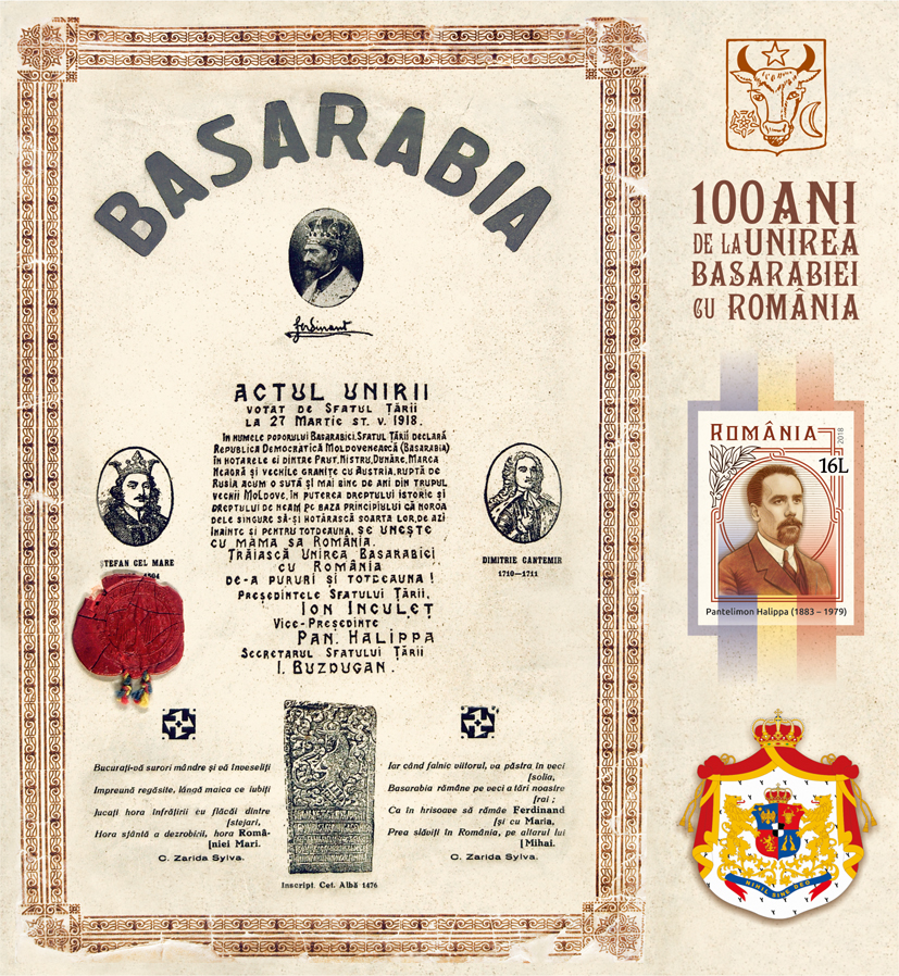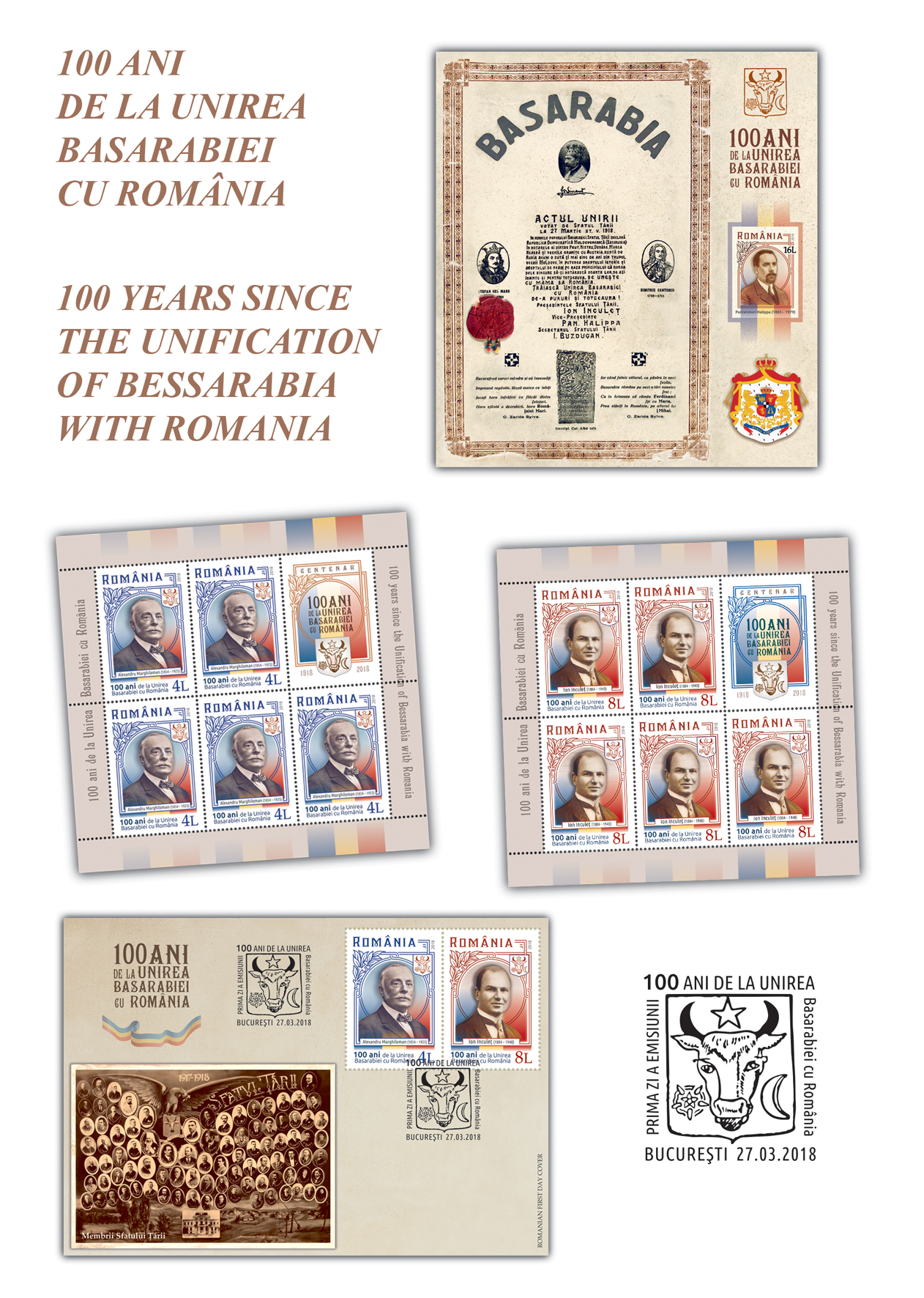 In the year of the Great Union Centenary, Romfilatelia celebrates the return of the Romanians living between the Prut and the Dniester rivers to the borders of the country, on March 27th, 1918, with the postage stamp issue 100 years since the Unification of Bessarabia with Romania. The new issue will be presented on Tuesday, March 26th, 2018, during the solemn session on the 100th anniversary since the Union between Bassarabia and Romania, at the Palace of Parliament.