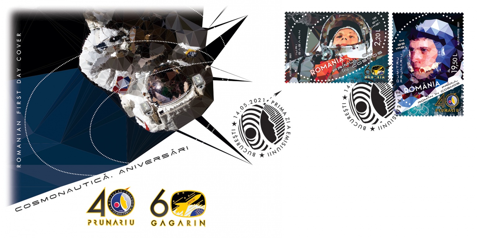 The postage stamp issue, which includes two stamps, an imperforated souvenir sheet and a “first day” cover, celebrates the 60th anniversary of man’s first flight into space (Yuri Gagarin, April 12th, 1961) and 40 years since the first space trip in which a Romanian cosmonaut – Dumitru-Dorin Prunariu – took part (May 14th, 1981).