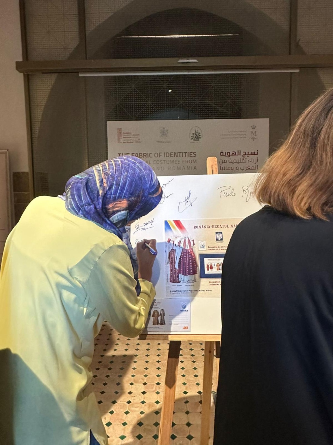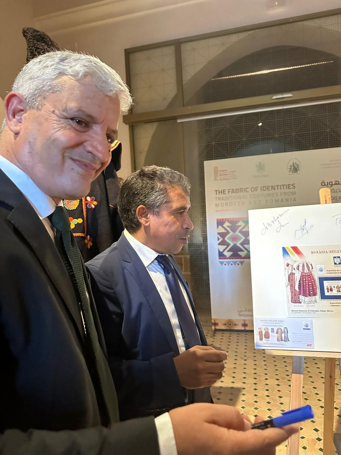 The event was organised by the National Foundation of Museums of the Kingdom of Morocco, under the agreement signed by Mr. Mohamed El Mehdi Qotbi, President, and the ‘Dimitrie Gusti’ National Village Museum, represented by Ms. Paulina Popoiu, Manager, and enjoyed the presence of Her Excellency Maria Ciobanu, the Ambassador of Romania to Rabat, Abdelaziz El Idrissi, head of the Museums Department, distinguished guests, representatives of the diplomatic corps, cultural institutions, artists, collaborators, and friends of the organising institutions, as well as admirers of Romanian and Moroccan folk costumes.