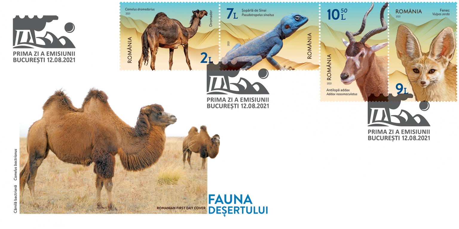 The postage stamps issue “Desert Fauna” will be available on Thursday, August 12th, 2021, in Romfilatelia’s shops network in Bucharest, Bacau, Brasov, Cluj-Napoca, Iasi and Timisoara and online on https://romfilatelia.ro/store/.