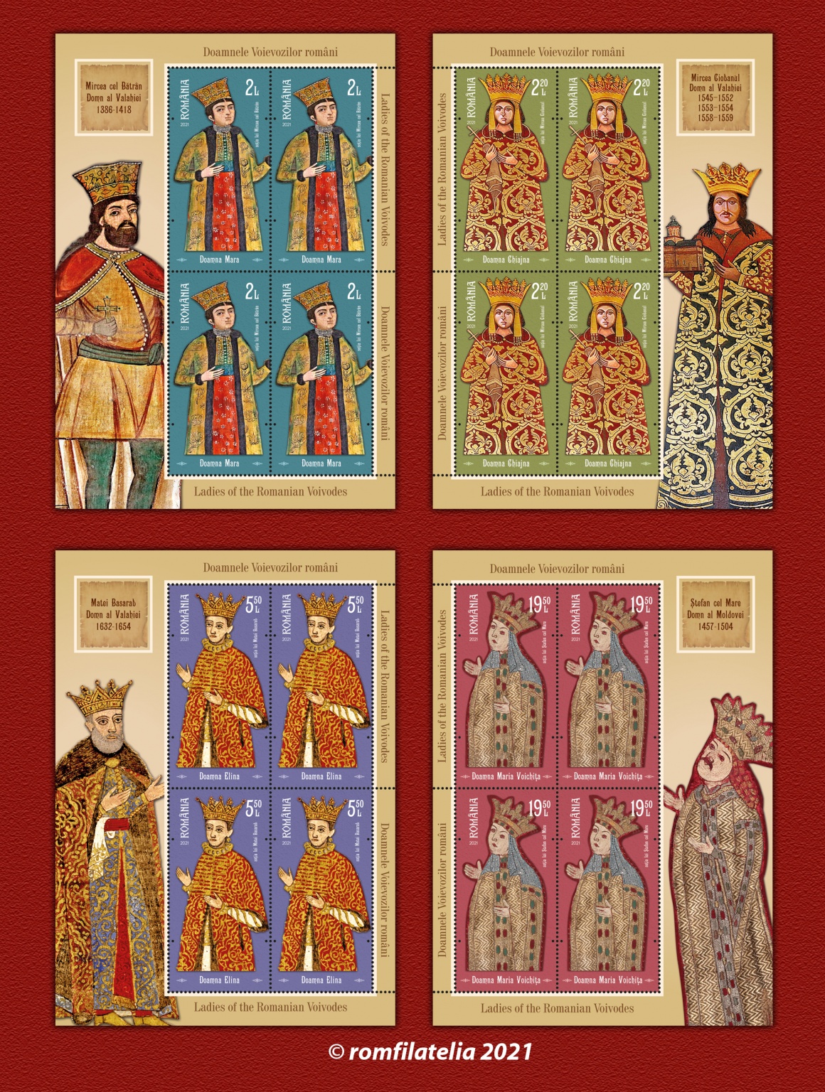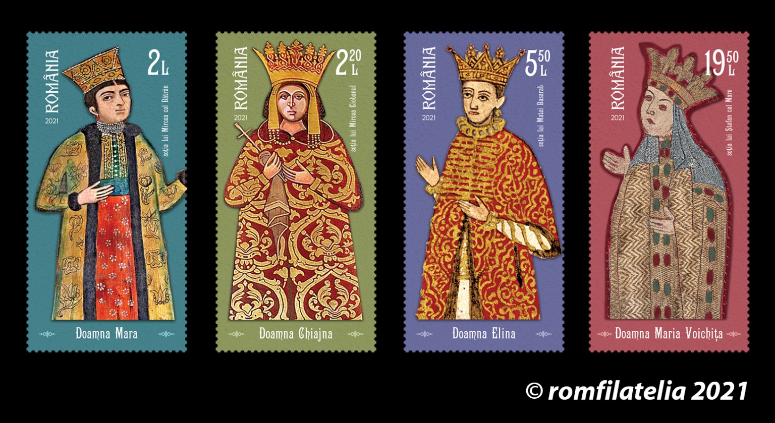 Romfilatelia brings back to memory the figures of four of these ladies through the postage stamps issue The Ladies of the Romanian Voivodes, which will be put into circulation on Friday, May 21st, 2021.