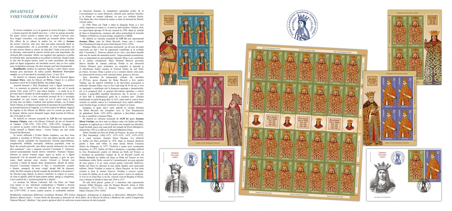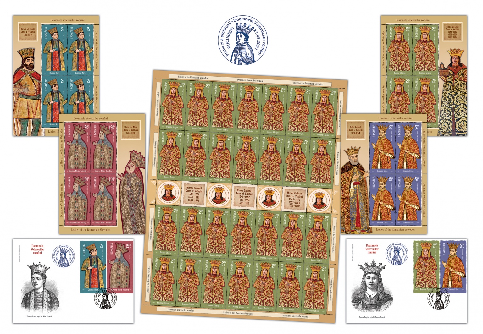 The postage stamps issue “Ladies of the Romanian Voivodes” will be available on Friday, May 21st 2021, in Romfilatelia’s shops network in Bucharest, Bacau, Brasov, Cluj-Napoca, Iasi and Timisoara and online on https://romfilatelia.ro/store/.