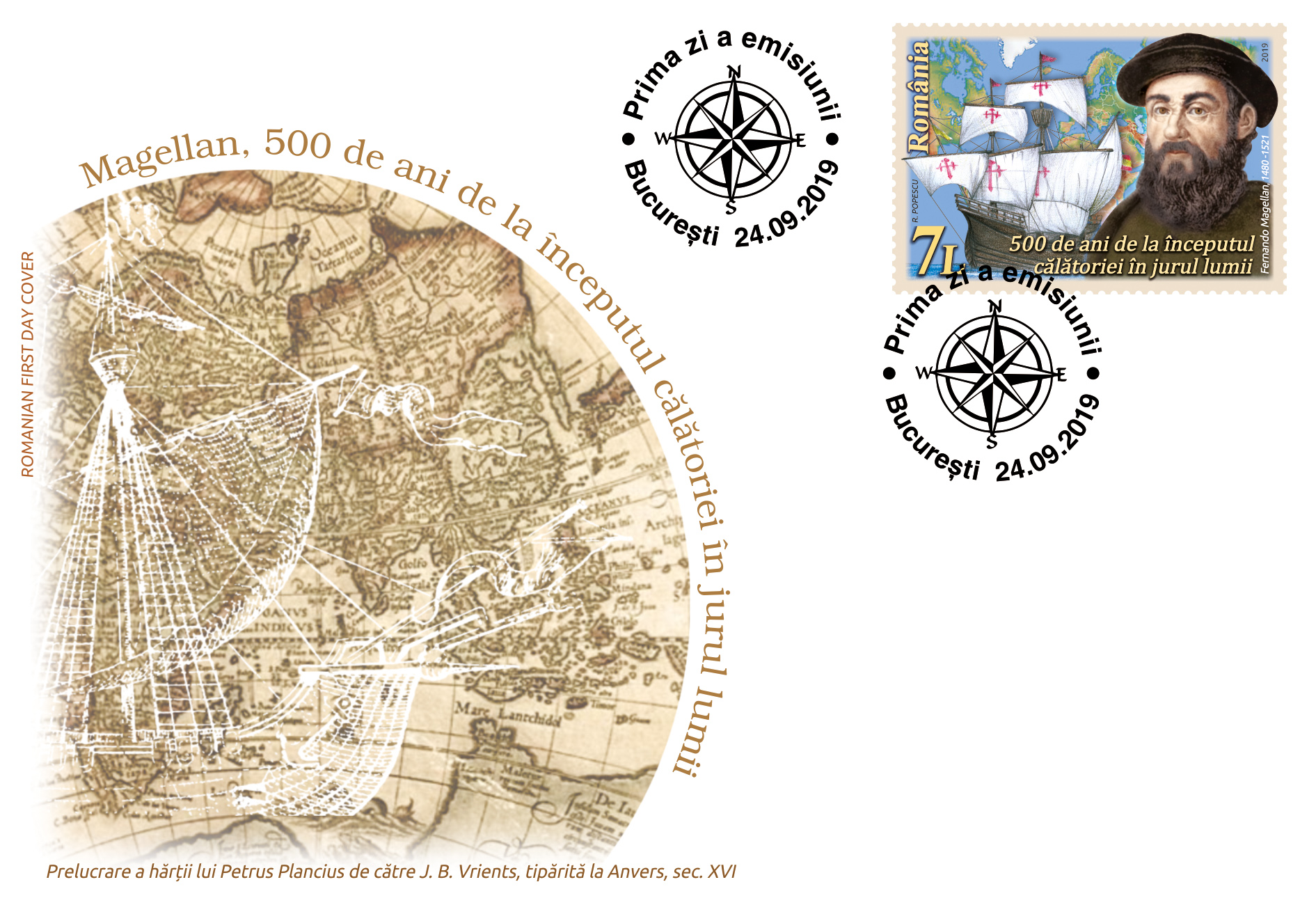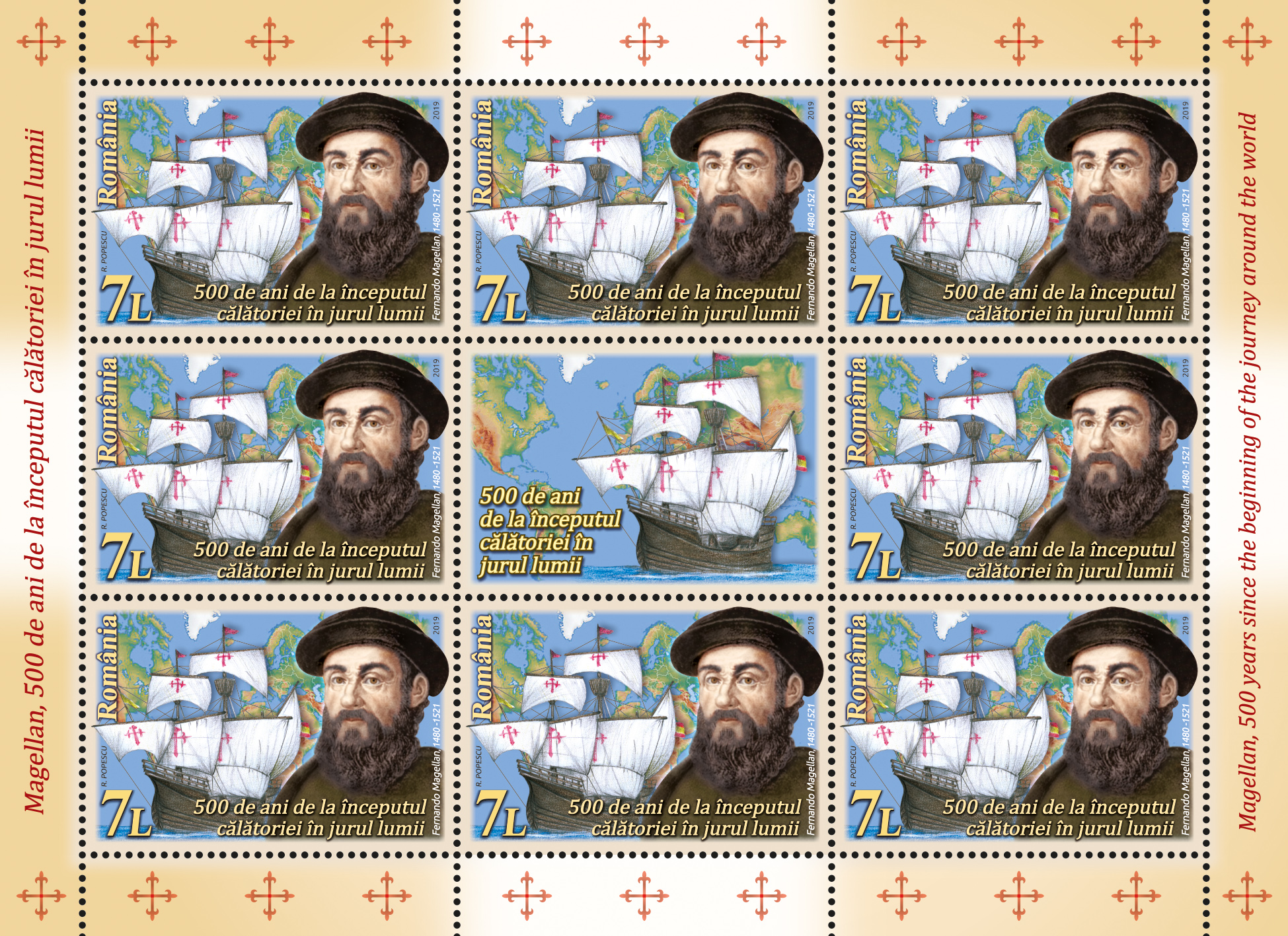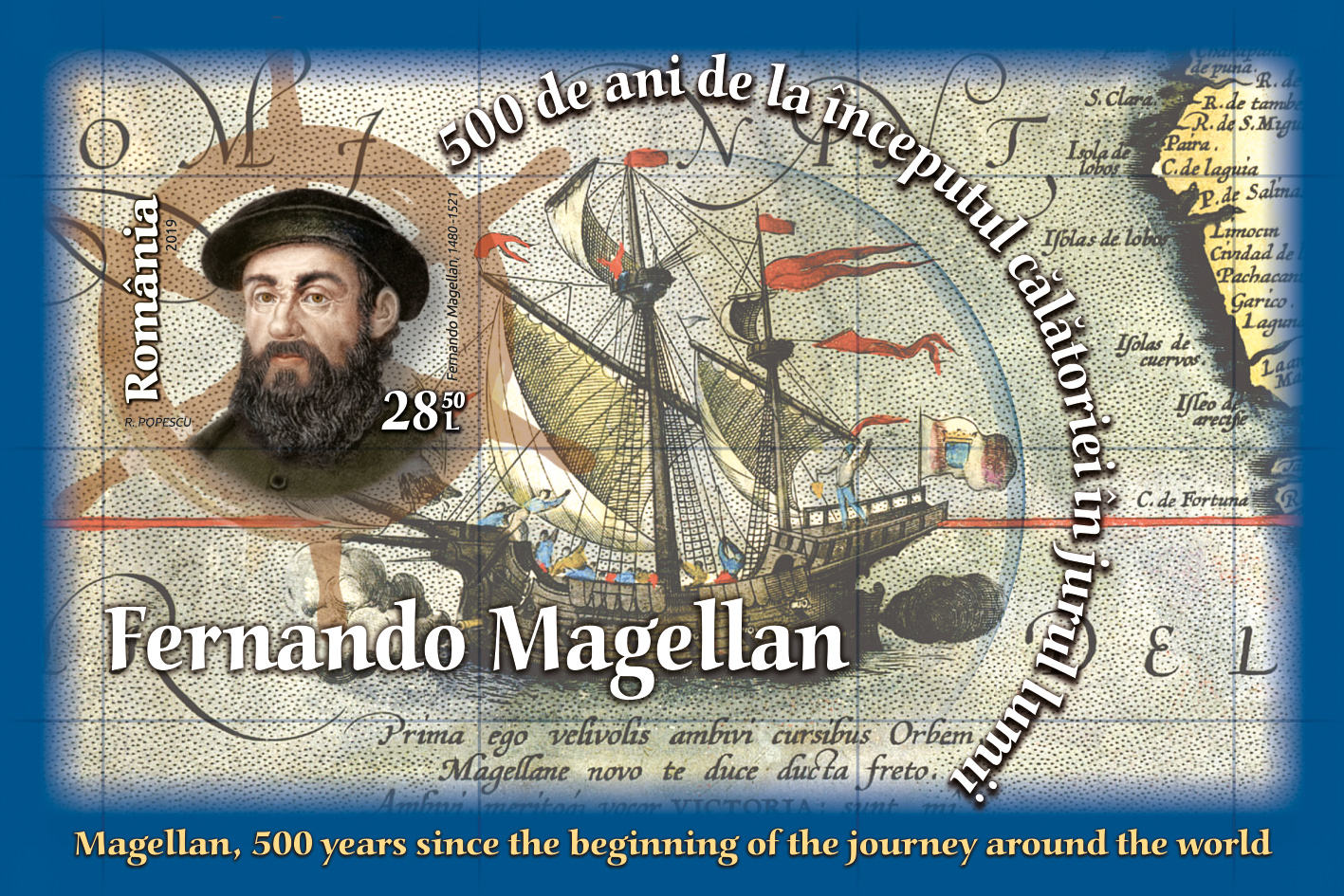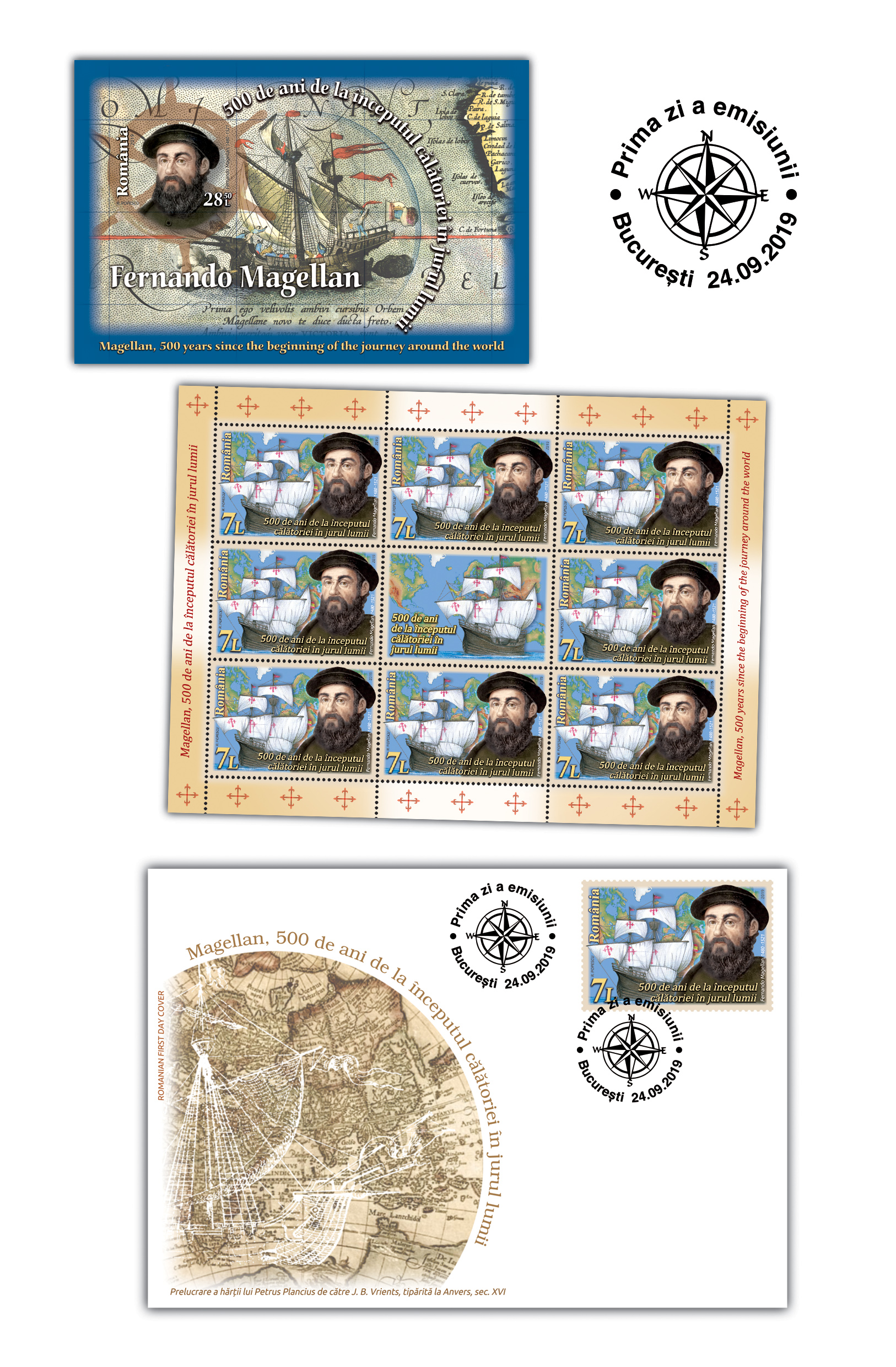 The postage stamps issue Magellan, 500 years since the beginning of the journey around the world. will be available on Tuesday, September 24th 2019, in Romfilatelia’s shops network in Bucharest, Bacau, Brasov, Cluj-Napoca, Iasi and Timisoara and online on https://romfilatelia.ro/store/.