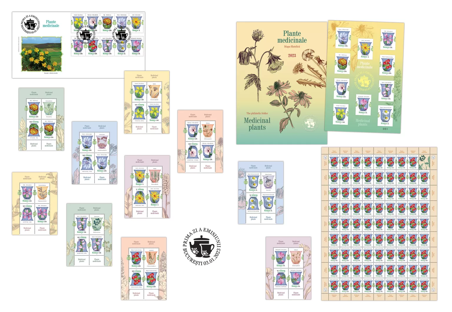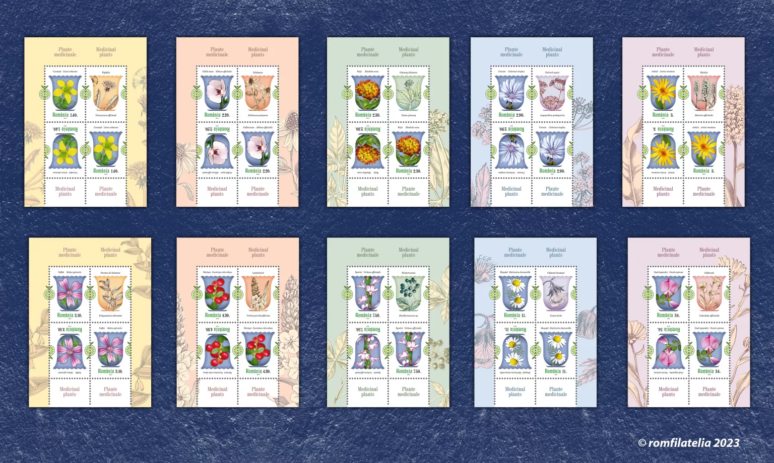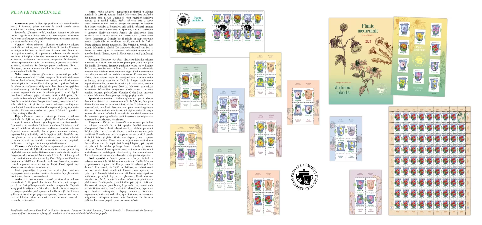 Promoting “Green Pharmacy”, the issue presents on the ten stamps the images of medicinal plants known for their beauty, to which are added the beneficial properties for preserving health and treating certain ailments.