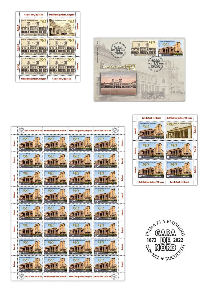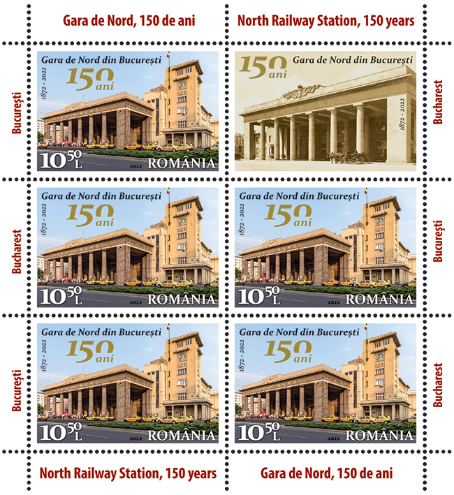 Romfilatelia introduces into circulation on Friday, September 23rd this year, a postage stamps issue dedicated to the anniversary of a century and a half since the establishment of a symbol of the Romania’s capital, entitled North Railway Station, 150 Years.