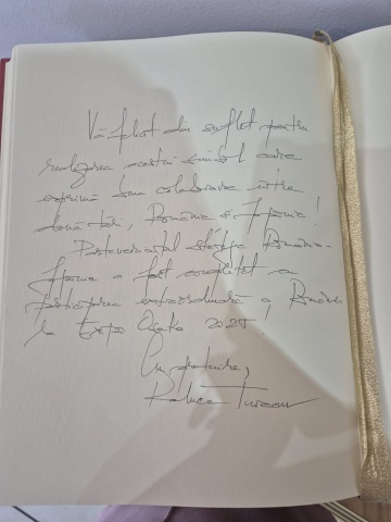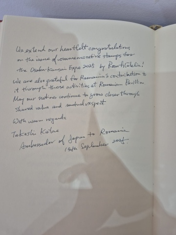 The launch also included the ‘first day’ cover with the Romanian Pavilion at Expo Osaka 2025 and the two-coloured stamp inspired by the Japanese flag ⚪.