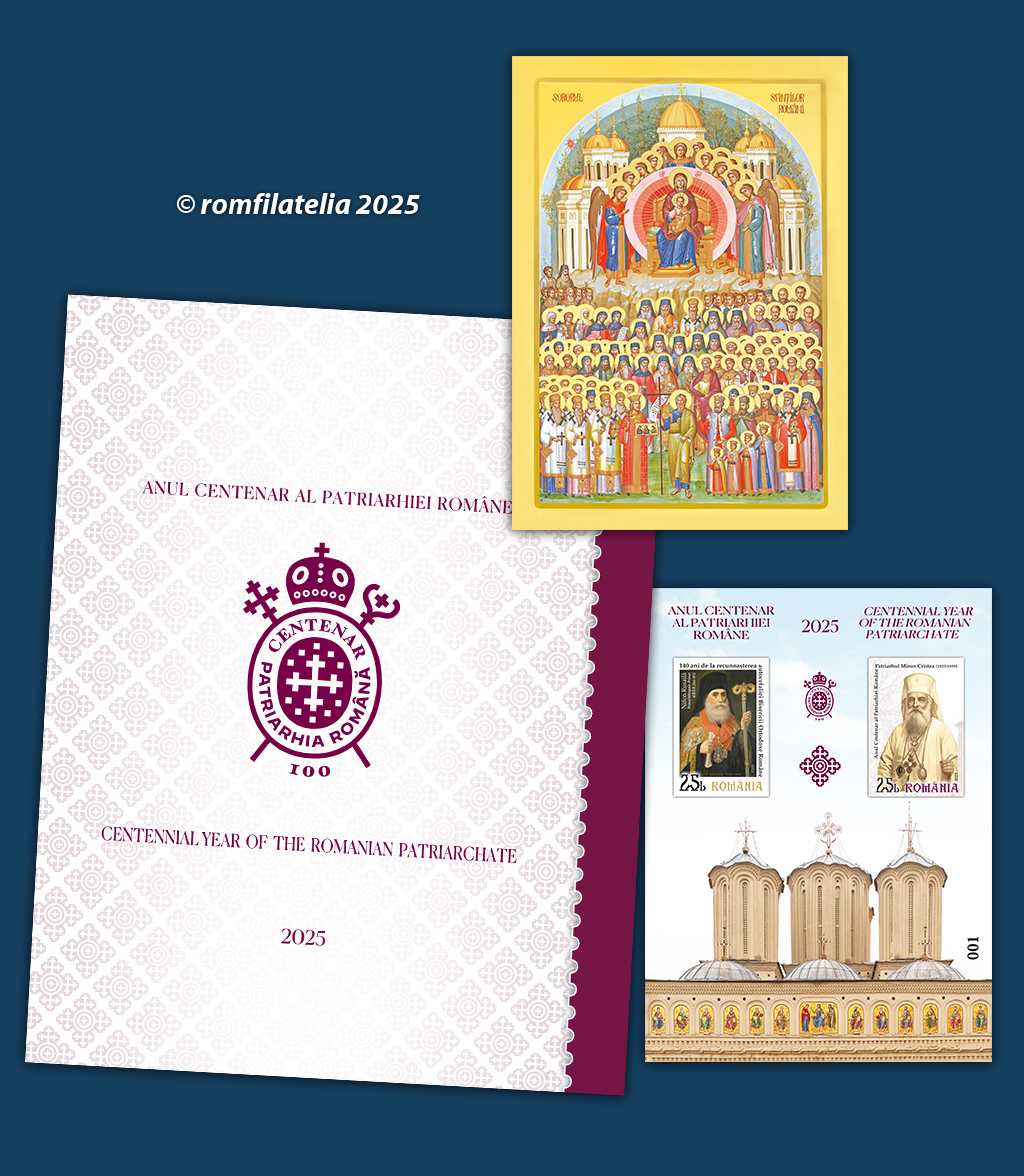Romfilatelia introduces into circulation on Tuesday, February 4th, this year, an anniversary issue dedicated to an event of major importance in the history of the Romanian Orthodox Church: the elevation of the Romanian Orthodox Church to the rank of Patriarchate. Under the title Centennial Year of the Romanian Patriarchate, the issue consists of a postage