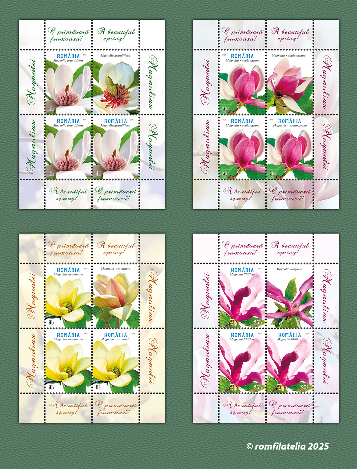 An interesting issue, having as topic Flora, will be introduced into circulation by Romfilatelia on Thursday, March 06th, this year, under the title Magnolias, consisting of four postage stamps, a set of 4 maxicards, for maximaphilia enthusiasts, a block of 4 stamps enclosed in a philatelic booklet and a First Day Cover. Magnolias are a