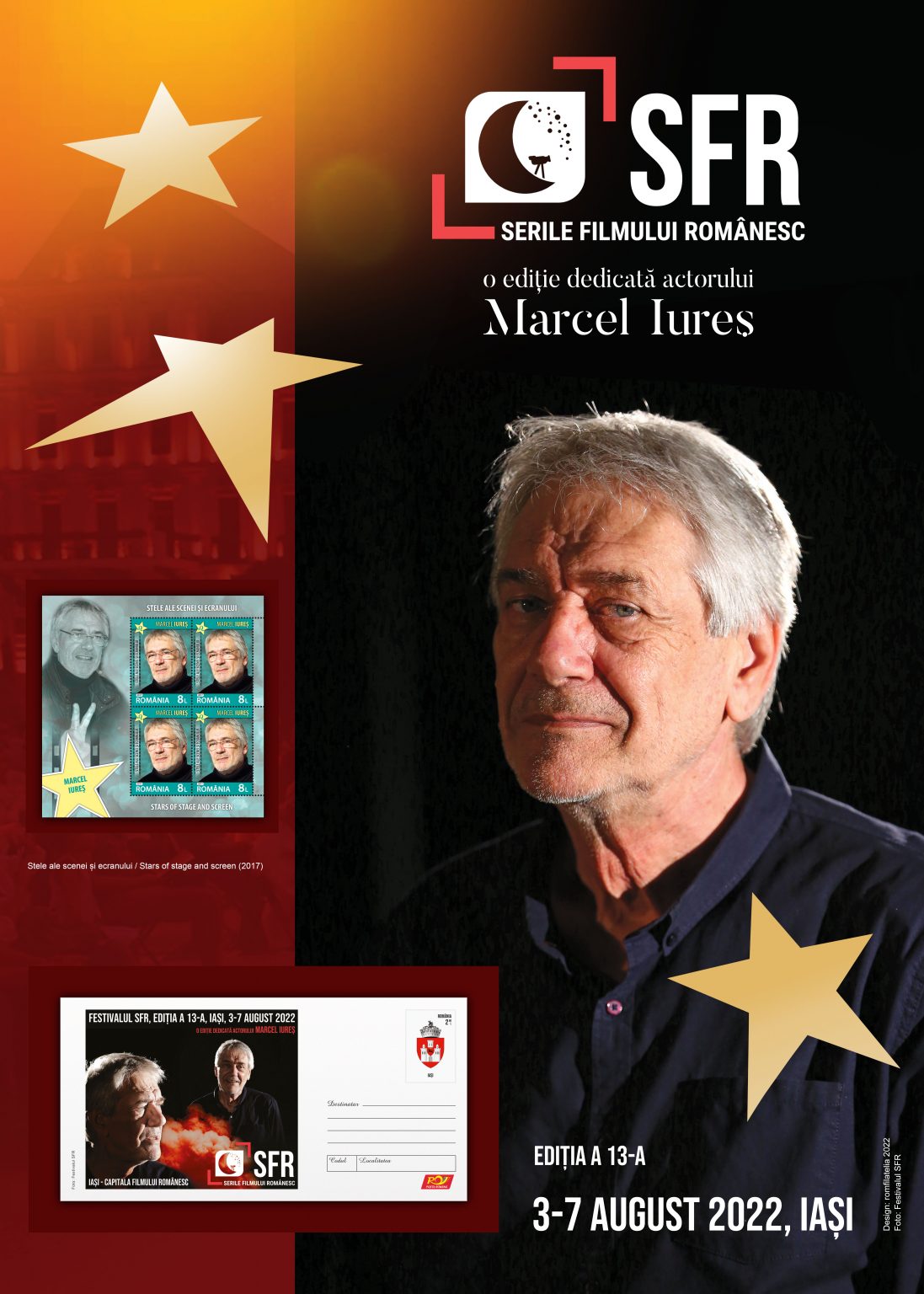 In this endeavour, Romfilatelia joined the “Romanian Film Evenings” Festival, organized in Iasi between August 3rd and 7th, 2022, which has him as special guest and whose edition is dedicated to Marcel Iureș.