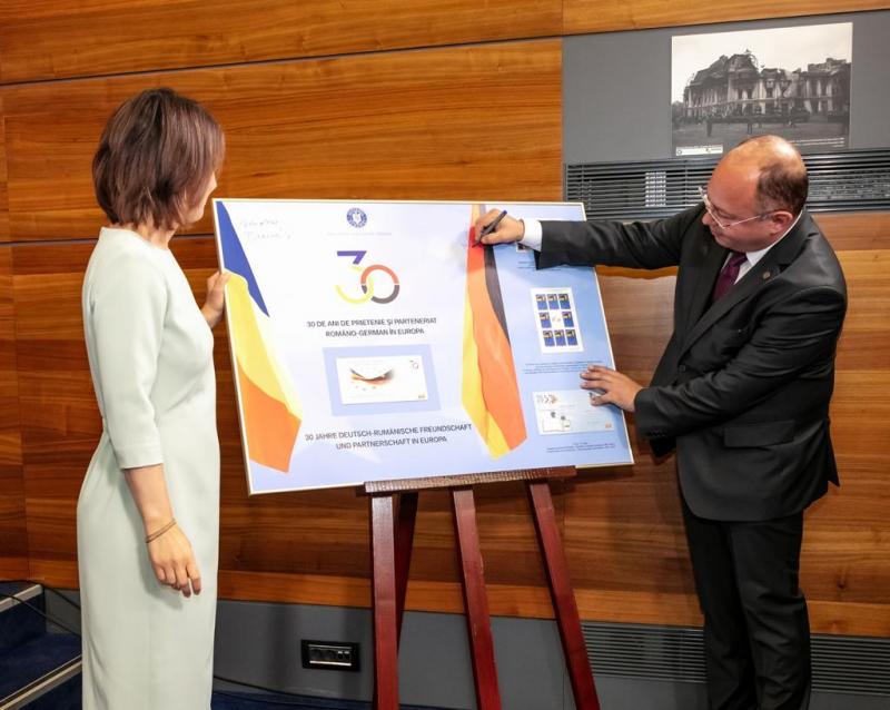 At the end of their statements, the two foreign ministers unveiled and signed the philatelic panel dedicated by Romfilatelia to the anniversary event, admiring the special philatelic items: the joint issue entitled “Romania-Germany, The Fortified Church of Biertan” (2011), the issue entitled “20 years since the signing of the Treaty between Romania and the Federal Republic of Germany on friendly cooperation and partnership in Europe” (2012) and the postal stationeries dedicated to the anniversary of “25 years since the signing of the Friendship Treaty between Romania and the Federal Republic of Germany” (2017), respectively, the one dedicated to the celebration of the 30 years since the signing of the Treaty (2022).
