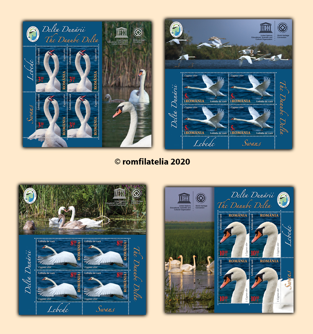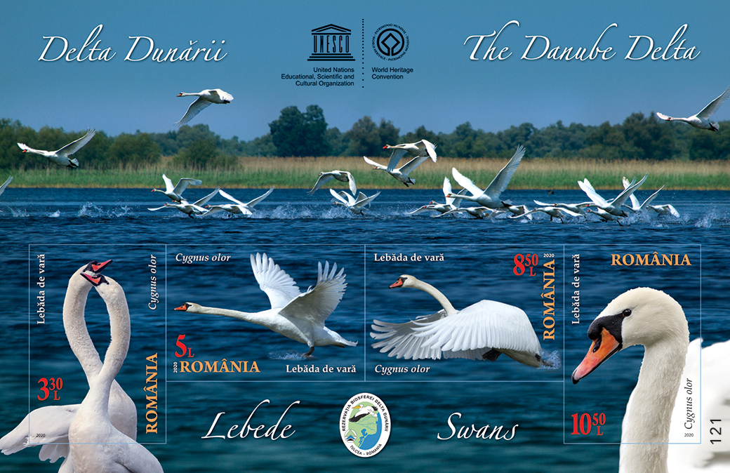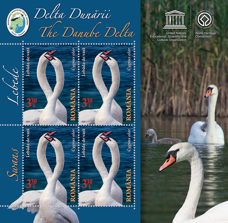 Romfilatelia proposes to collectors a new topic dedicated to UNESCO Heritage and to the 30th anniversary of the Danube Delta Biosphere Reserve, through the postage stamps issue “The Danube Delta. Swans”, which will enter into circulation on Tuesday, September 1st, 2020.