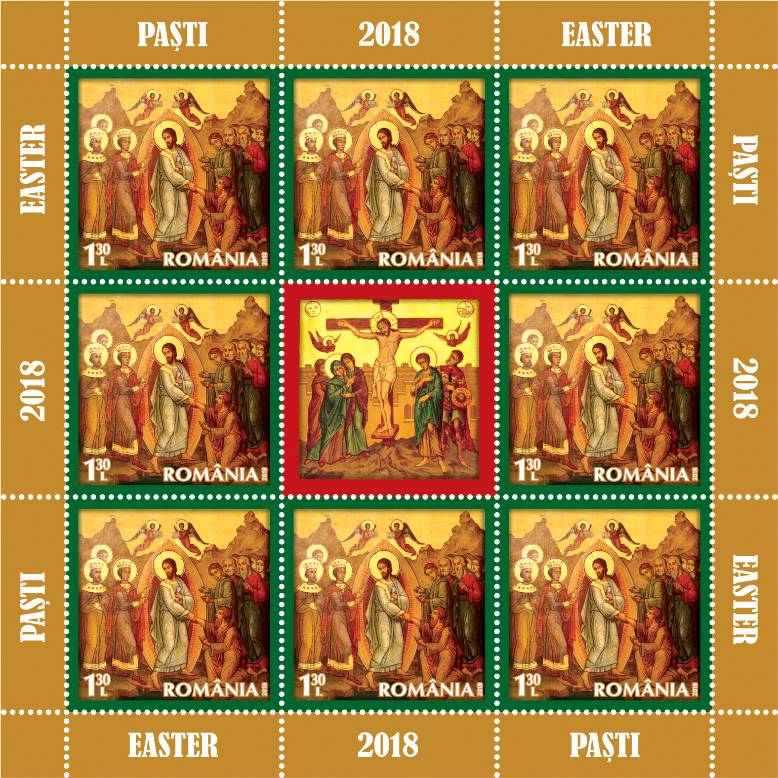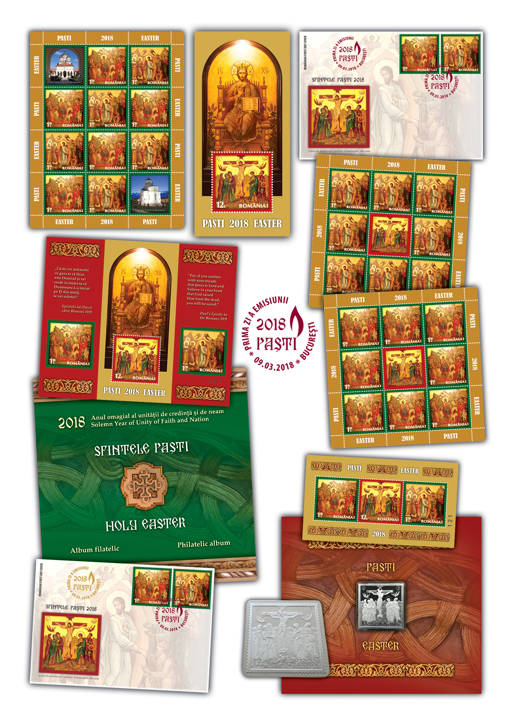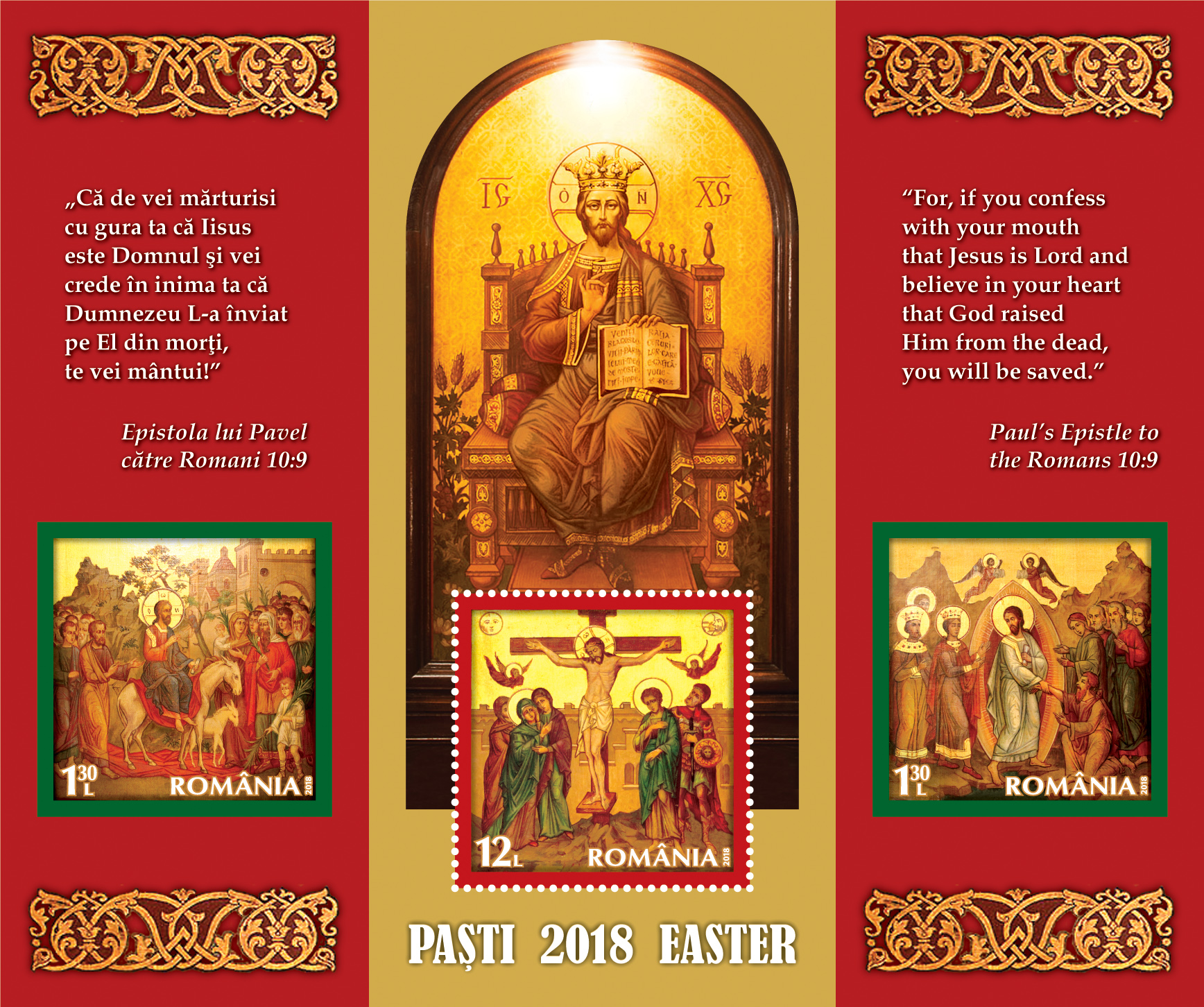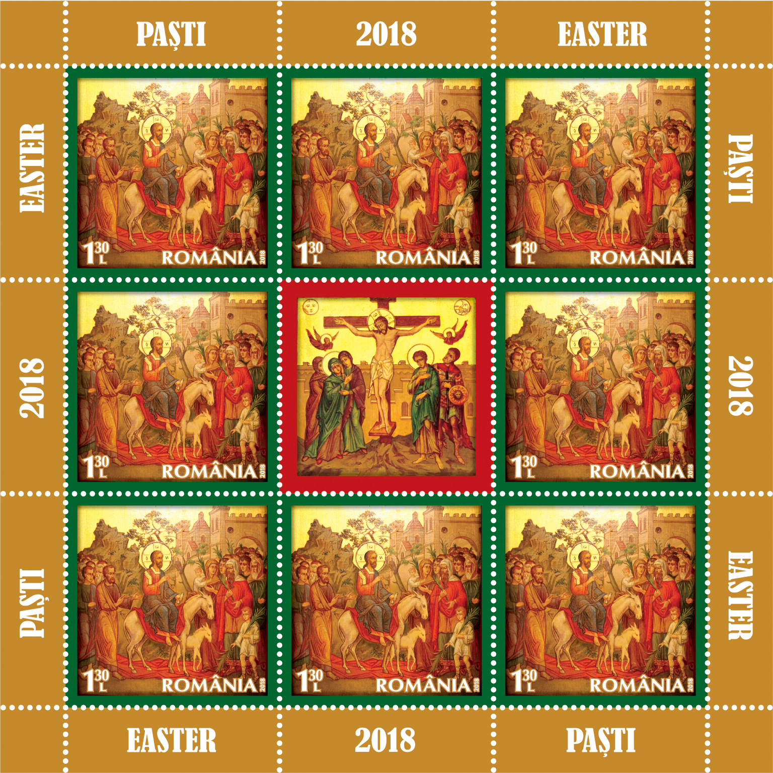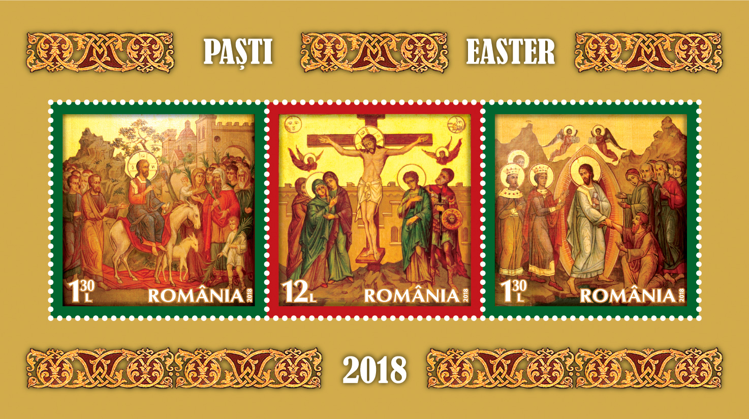 On the Eve of the most important event of Christianity, Romfilatelia introduces into circulation the postage stamp issue The Holy Easter 2018, which commemorates the turning points from the life of Jesus Christ – the Entrance to Jerusalem, the Crucifixion and the Resurrection. The new issue will be available on Friday, March 9th, 2018, in Romfilatelia’ own shops network in Bucharest, Bacau, Brașov, Cluj-Napoca, Iași and Timișoara and online on https://romfilatelia.ro/store/.