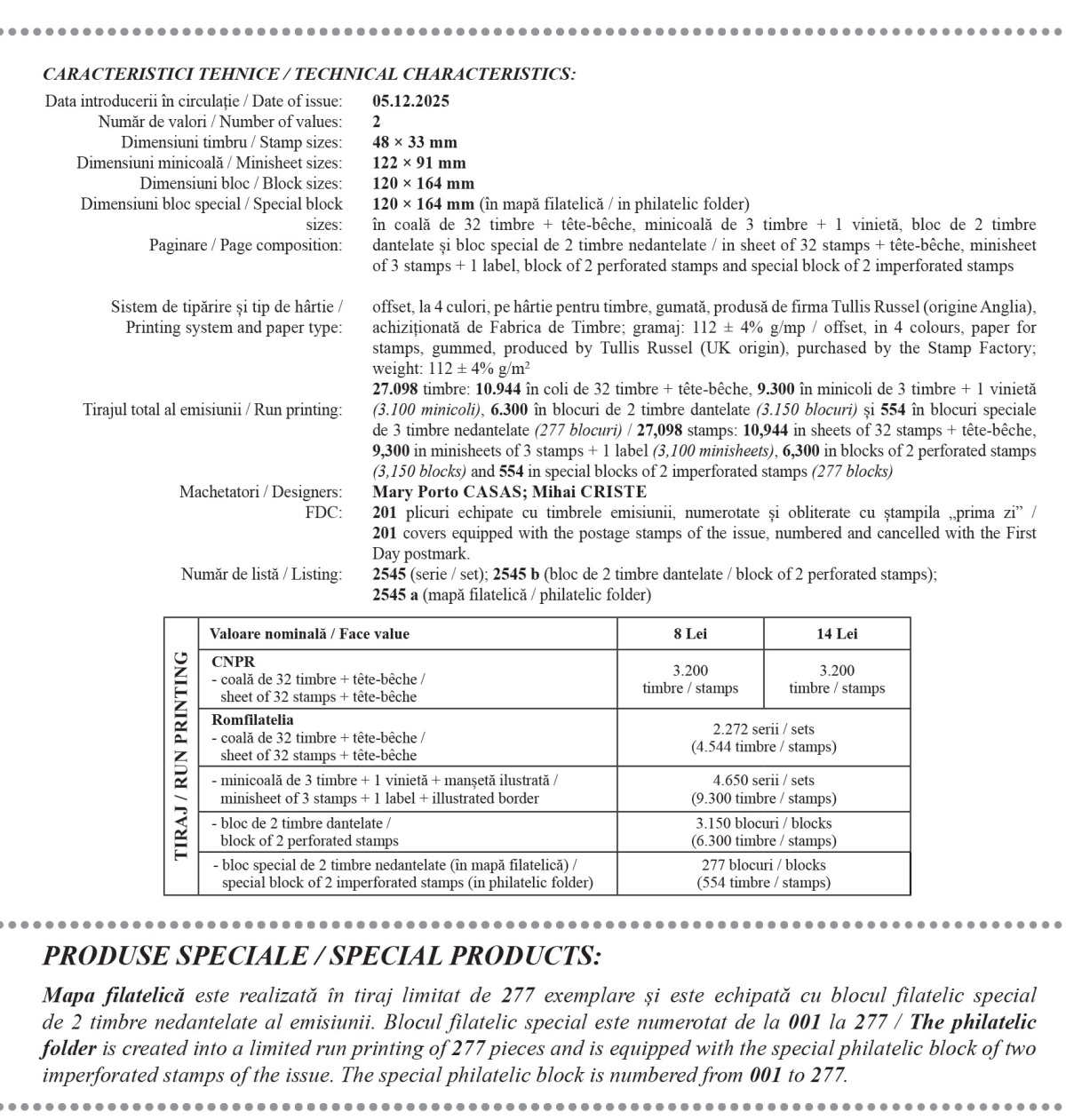 Romfilatelia mulțumește reprezentanților Regiei Naționale a Pădurilor – Romsilva, Ministerului Afacerilor Externe din România, Administrației Poștale din Uruguay (Correo Uruguayo), Ambasadei României în Republica Orientală a Uruguayului și Ambasadei Republicii Orientale Uruguay în România, pentru sprijinul documentar și colaborarea la realizarea acestei emisiuni comune de mărci poștale.