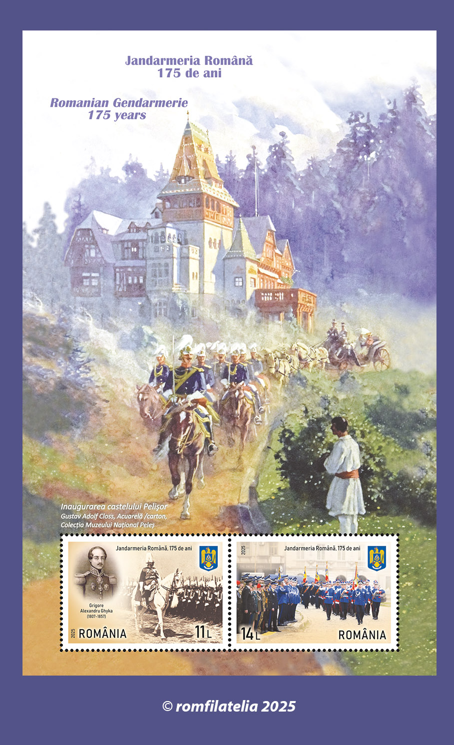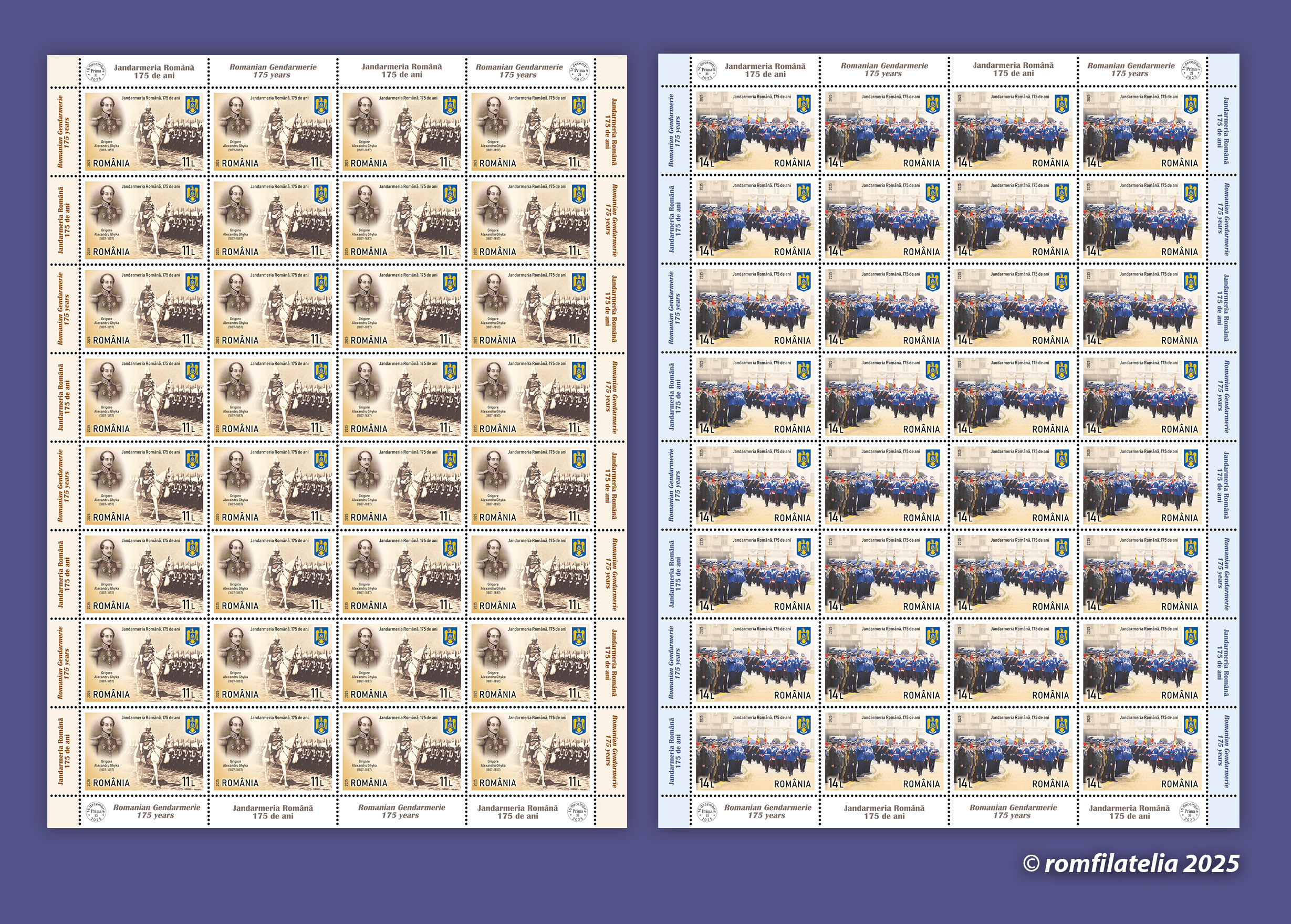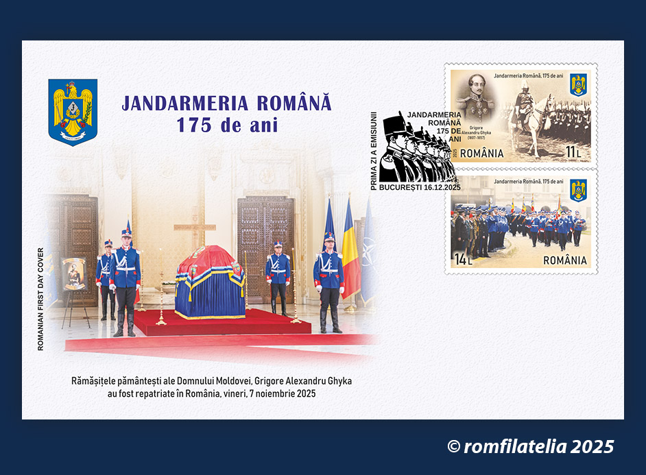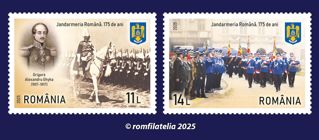 Romfilatelia și Poșta Română introduc în circulație marți, 16 decembrie a.c. o emisiune filatelică aniversară sub denumirea Jandarmeria Română, 175 de ani.