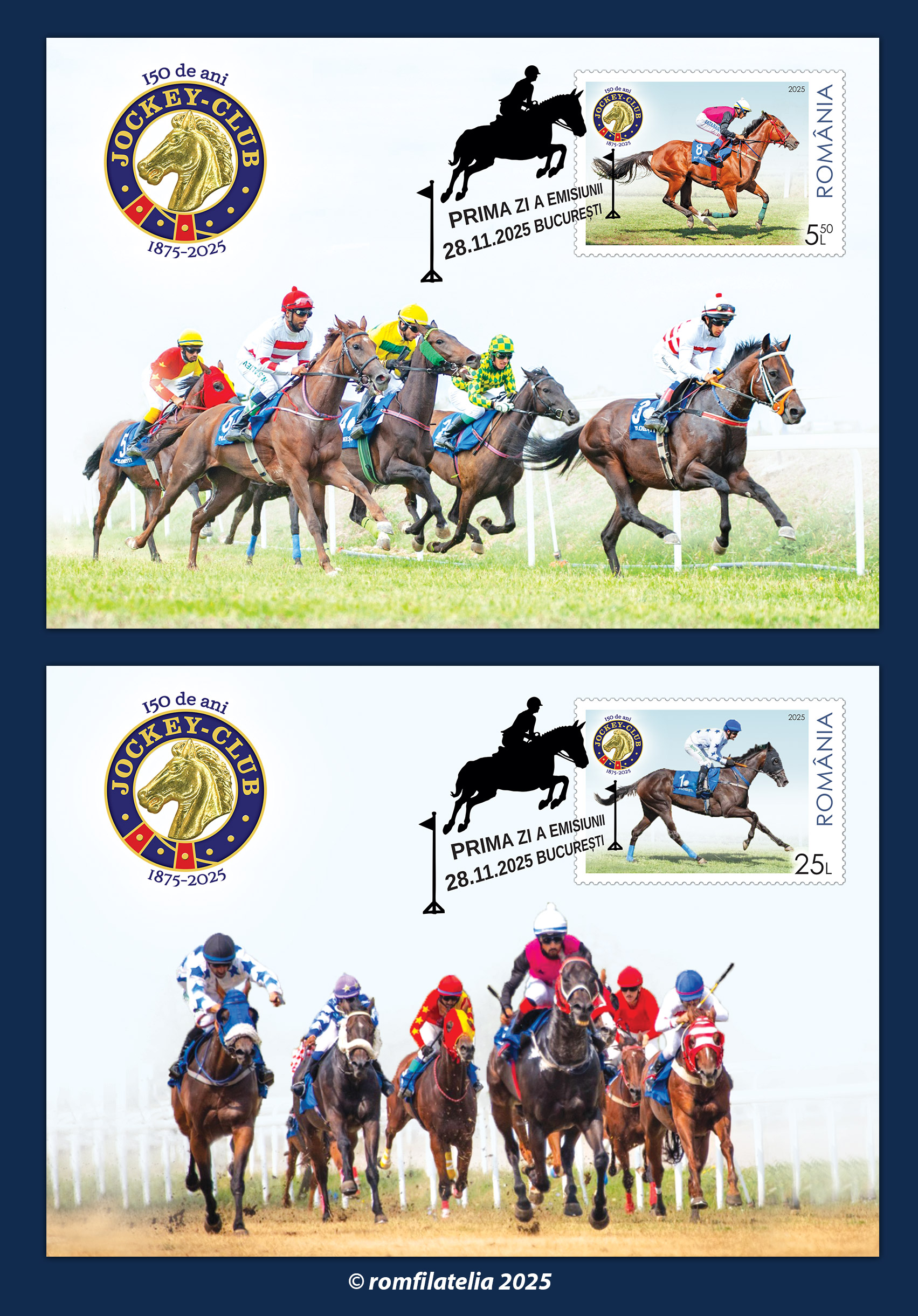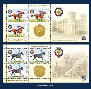 Romfilatelia și Poșta Română introduc în circulație vineri, 28 noiembrie a.c. o emisiune filatelică aniversară sub denumirea Jockey Club Român, 150 de ani, dedicată unui Club de elită, cu tradiție în domeniul hipismului.
