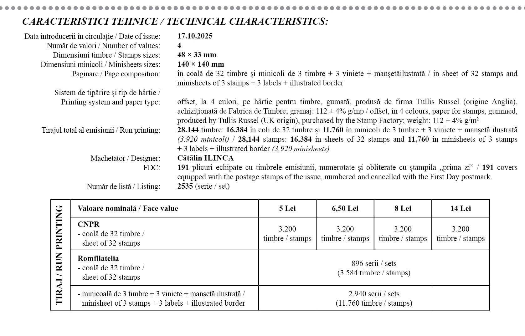 Romfilatelia mulțumește Cercet. Șt. Gr. I Luis Ovidiu Popa, Directorul Muzeului Național de Istorie Naturală „Grigore Antipa” și muzeografului Dr. Alexandru Iftime, pentru consultanța de specialitate acordată la realizarea acestei emisiuni de mărci poștale.