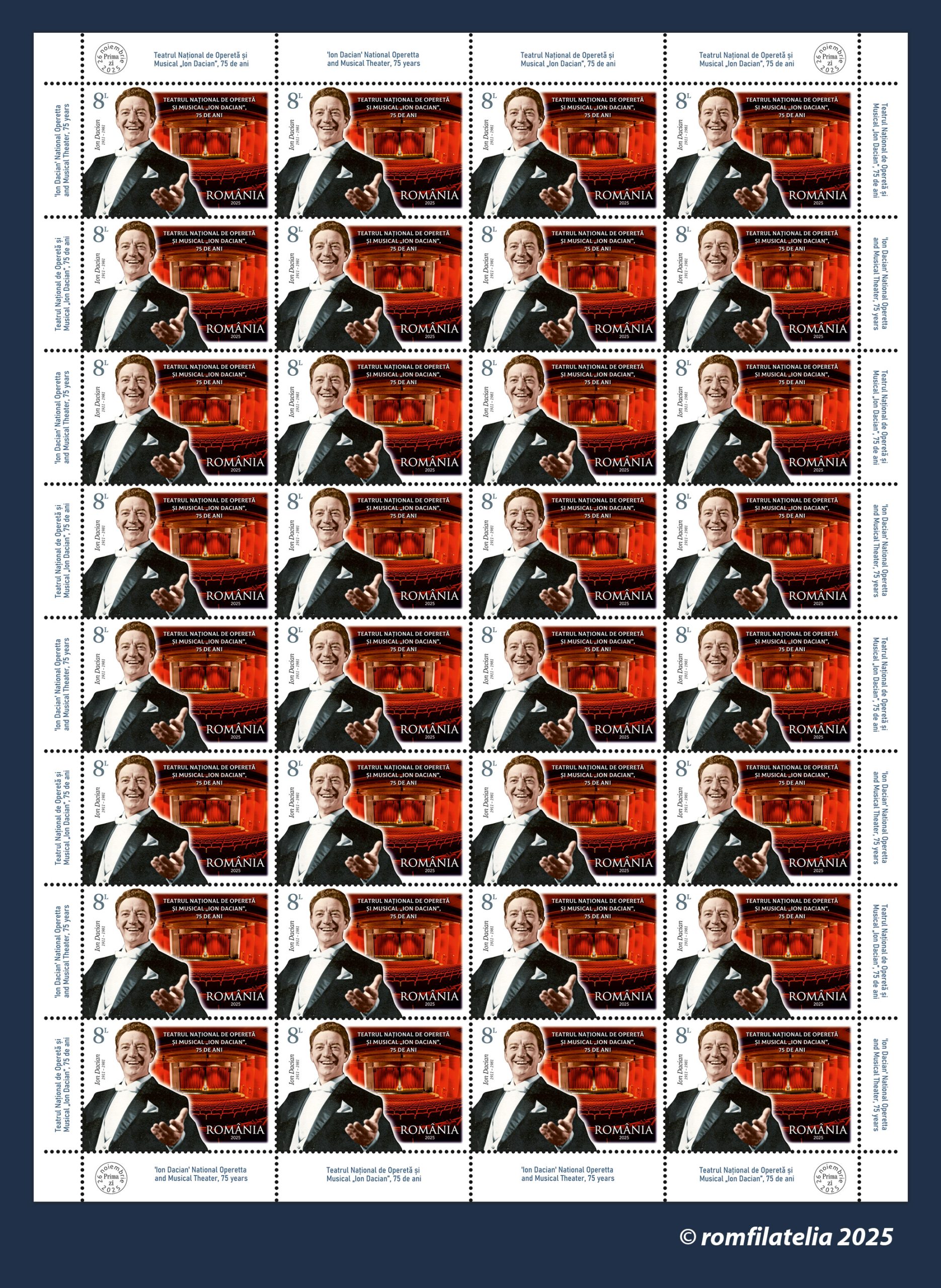 Romfilatelia și Poșta Română introduc în circulație miercuri, 26 noiembrie a.c., emisiunea aniversară de mărci poștale intitulată Teatrul Național de Operetă și Musical „Ion Dacian”, 75 de ani, dedicată unei instituții culturale de elită a României.