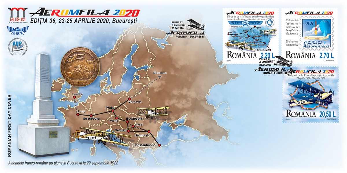 Venind în întâmpinarea colecționarilor ce îndrăgesc tematica Aviație, Romfilatelia introduce în circulație, joi, 23 aprilie, emisiunea de mărci poștale Aeromfila 2020.