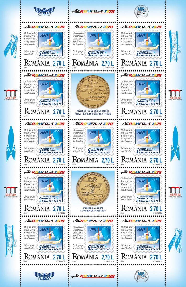 Emisiunea de mărci poștale „Aeromfila 2020” va fi disponibilă începând de joi, 23 aprilie 2020, în magazinele Romfilatelia din București, Bacău, Brașov, Cluj-Napoca, Iași, Timișoara, precum și în magazinul nostru online: https://romfilatelia.ro/store/. Aceasta este completată de plicul prima zi, în coală de 27 timbre, 1 vinietă, 14 tabsuri și tęte-bęche, minicoală de 13 timbre, 2 viniete diferite, 10 tabsuri, minicoală de 8 timbre, 1 vinietă, 6 tabsuri şi coliţă dantelată.