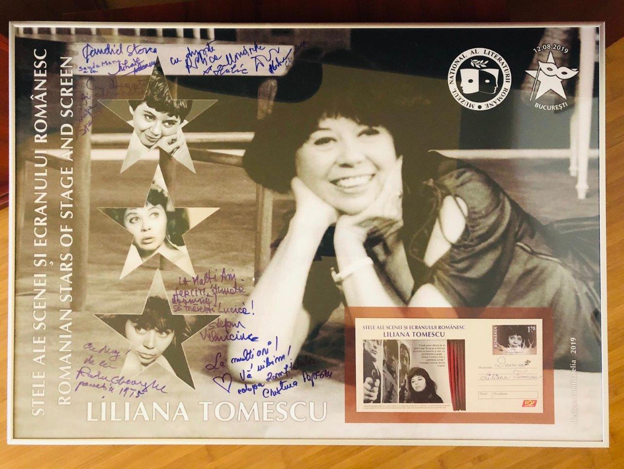 În semn de respect şi preţuire pentru Maeştrii scenei româneşti, Romfilatelia continuă proiectul dedicat acestora, astfel că, în parteneriat cu Muzeul Național al Literaturii Române, a organizat luni, 12 august, în Grădina Instituției partenere, la ora 18:00, evenimentul de lansare a întregului poștal (plic de corespondență cu timbru tipărit), pentru a marca aniversarea a 90 de ani de viață a marii actrițe Liliana Tomescu, un omagiu adus întregii cariere artistice.