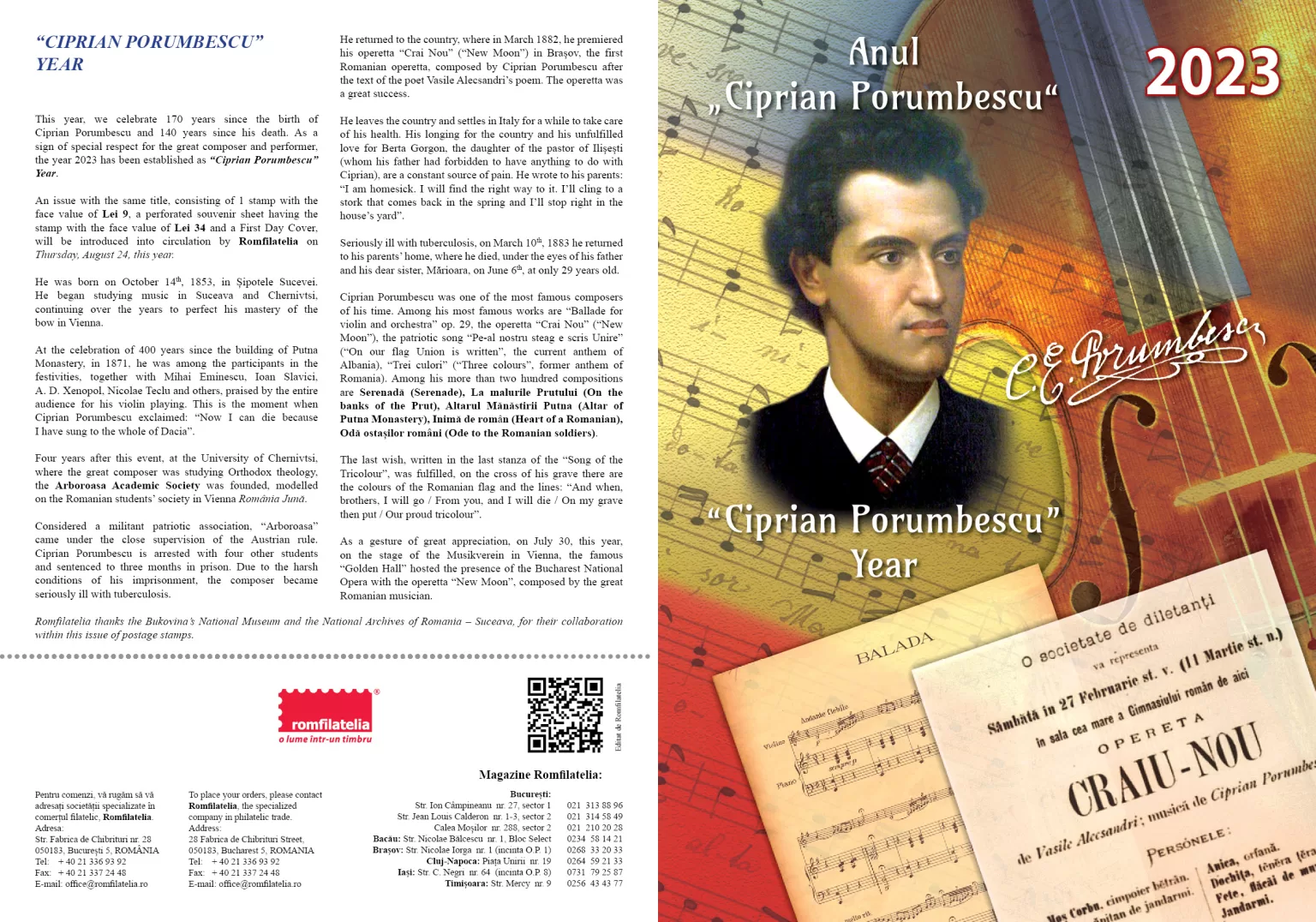 În acest an, aniversăm 170 de ani de la nașterea lui Ciprian Porumbescu și comemorăm 140 de ani de la moartea sa. Ca semn de deosebit respect pentru marele compozitor și interpret, anul 2023 a fost instituit ca Anul „Ciprian Porumbescu”.