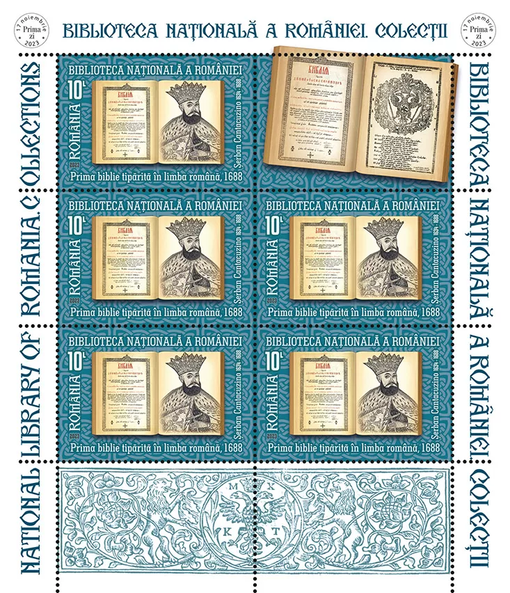 O astfel de operă, a cărei semnificaţie întru devenirea limbii române în forma ei cea mai aleasă nu poate fi uitată, este Biblia de la București sau Biblia lui Șerban Cantacuzino, prima biblie tipărită în limba română în anul 1688 (detaliu redat pe timbrul cu valoarea nominală de 10 lei).