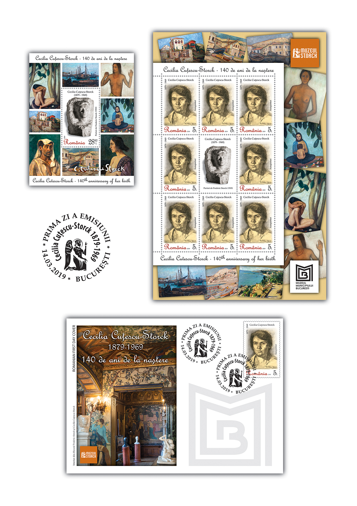 Emisiunea de mărci poștale „Cecilia Cuțescu-Storck, 140 de ani de la naștere” va fi disponibilă începând de joi, 14 martie 2019, în magazinele Romfilatelia din București, Bacău, Brașov, Cluj-Napoca, Iași, Timișoara, precum și în magazinul nostru online: https://romfilatelia.ro/store/. Aceasta este completată de 1 plic prima zi, iar ca forme de machetare au fost folosite coala de 40 timbre și minicoala de 8 timbre, 1 vinietă și o coliţă dantelată.