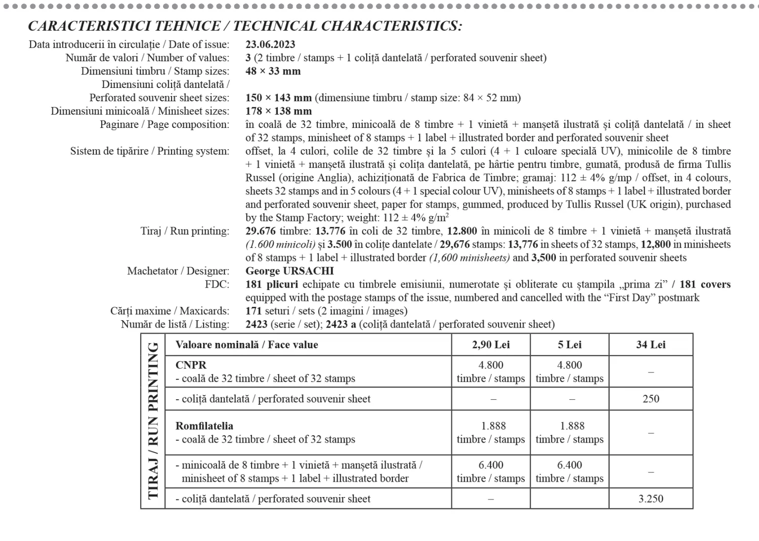 Emisiunea va fi disponibilă de Vineri, 23 iunie, în rețeaua magazinelor Romfilatelia din București, Bacău, Brașov, Cluj-Napoca, Iași, Timișoara, precum și în magazinul nostru online: https://romfilatelia.ro/store/.