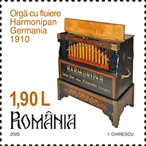 Orga cu fluiere Harmonipan este redată pe timbrul cu valoarea nominală de 1,90 Lei.