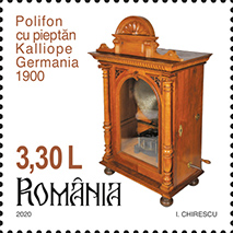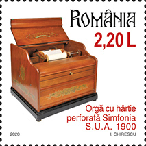 Orga cu hârtie perforată Simfonia este reprodusă pe timbrul cu valoarea nominală de 2,20 Lei.