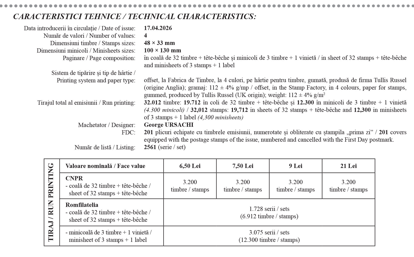 Romfilatelia mulțumește Cercet. Șt. Gr. I Luis Ovidiu Popa, Directorul Muzeului Național de Istorie Naturală „Grigore Antipa” și muzeografului Dr. Alexandru Iftime, pentru consultanța de specialitate acordată la realizarea acestei emisiuni de mărci poștale.