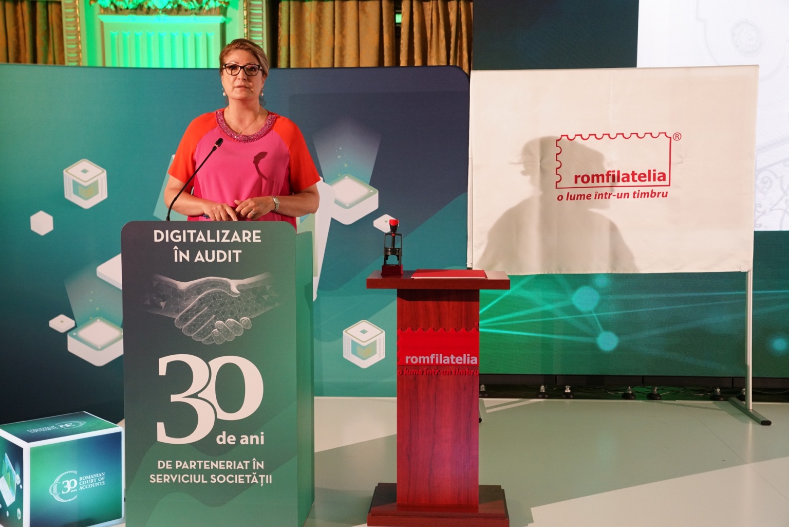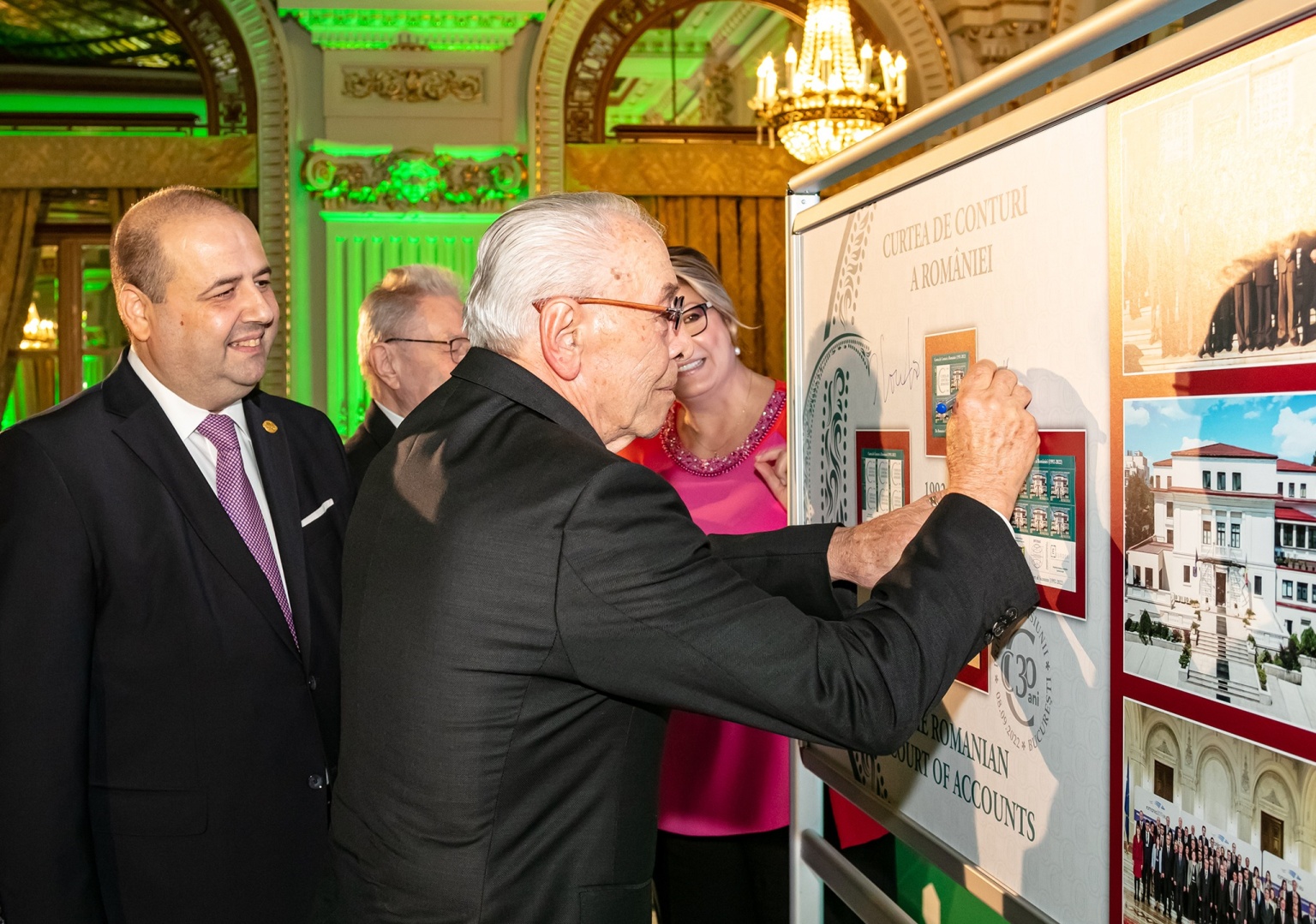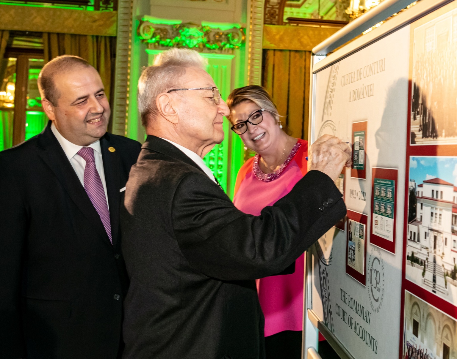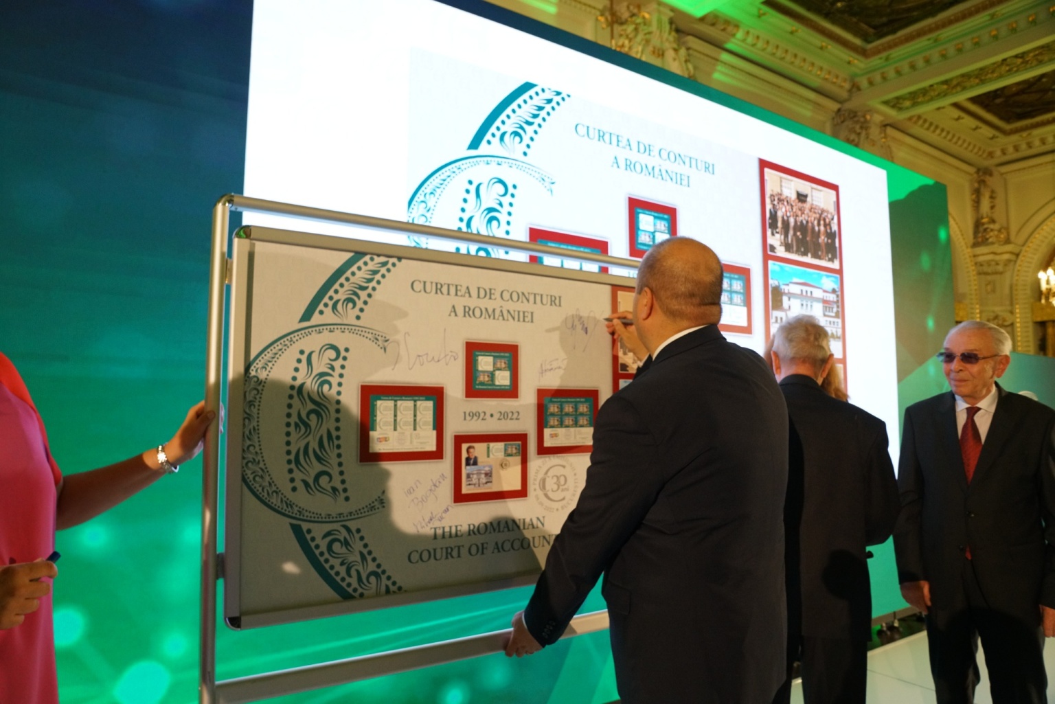 În cadrul evenimentului, doamna Cristina Popescu, Director General Romfilatelia, unica autoritate emitentă a mărcilor poştale româneşti, a reiterat desosebita atenţie acordată acestei instituţii de prim rang a României, amintind de emisiunea din 2014, introdusă în circulaţie cu prilejul împlinirii a 150 de ani de la înfiinţarea acesteia, cea din 2019, când o emisiune aniversară marca împlinirea a 200 de ani de la nașterea primului președinte al Curții de Conturi, Alexandru Romalo. În același an instituția aniversa 155 de ani de la înființare prin realizarea unor produse filatelice de colecție.