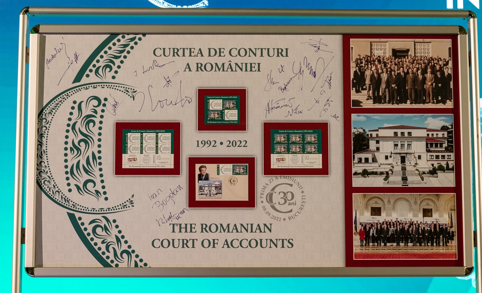 Cu ocazia evenimentului aniversar Conferinţa Internaţională „Curtea de Conturi a României – 30 de ani de progres spre digitalizarea auditului”, Romfilatelia a lansat astăzi joi, 8 septembrie, emisiunea de mărci poştale dedicată instituţiei supreme de audit, „Curtea de Conturi a României (1992-2022)”.