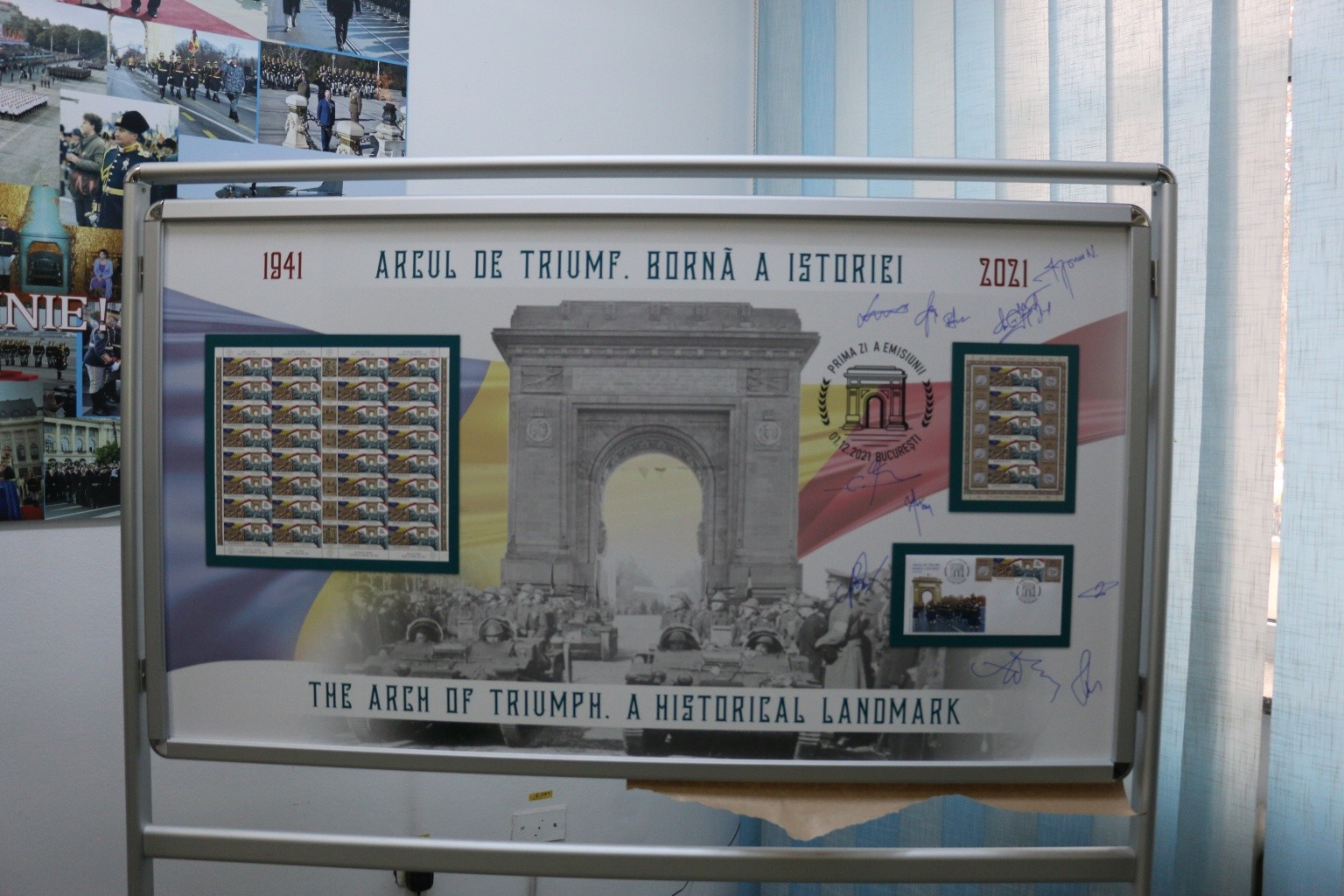 În cadrul manifestărilor dedicate Zilei Naționale a României, Romfilatelia a fost invitată de către conducerea Brigăzii 30 Gardă „ Mihai Viteazul”, să prezinte, la sediul acesteia, emisiunea de mărci poștale Arcul de Triumf, bornă a istoriei (1941- 2021).