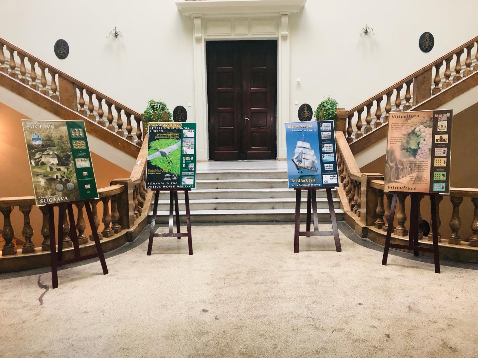 Exponatele filatelice au inclus emisiuni de mărci poștale reprezentative pentru România, ce au ilustrat tradiția, obiceiurile, valorile materiale și imateriale incluse în Patrimoniul Mondial UNESCO, regiunile și orașele României.