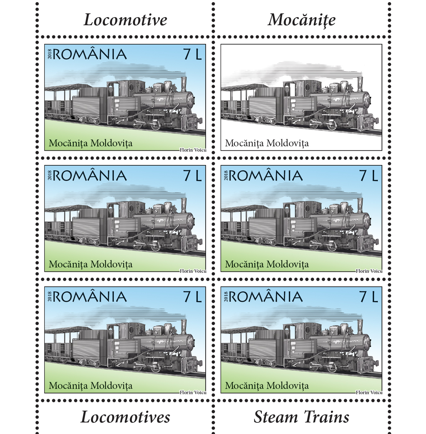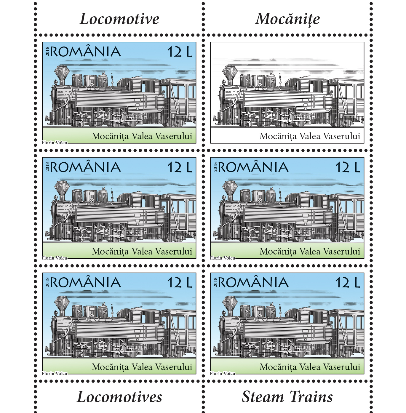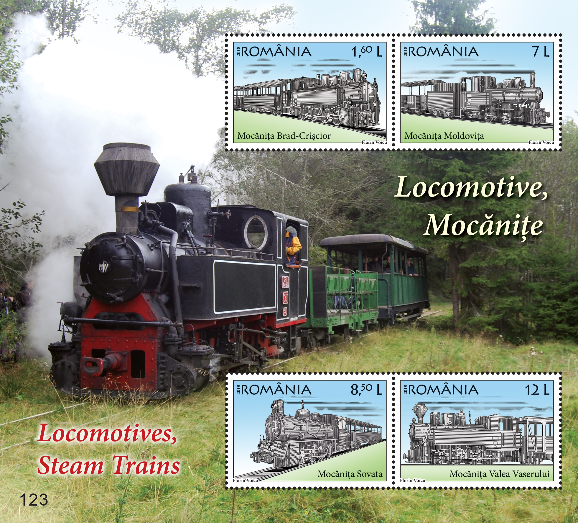 Pentru pasionații de tehnică, dar și de tradiții, Romfilatelia introduce în circulație emisiunea de mărci poștale Locomotive, Mocănițe. Pe timbrele emisiunii sunt ilustrate unele dintre mocănițele reprezentative ale României. Celebră, atât în țară, cât și în străinătate, mocănița este un tren de linie îngustă, dirijat de o locomotivă cu aburi. Acesta circulă în regiunile de munte, în trecut asigurând transportul mărfurilor și în special al lemnelor. Numele acestui pitoresc mijloc de transport se datorează mocanilor, așa cum sunt denumiți localnicii din zona Munților Apuseni. Calea ferată îngustă care traversa Apusenii s-a înființat între anii 1910-1912.