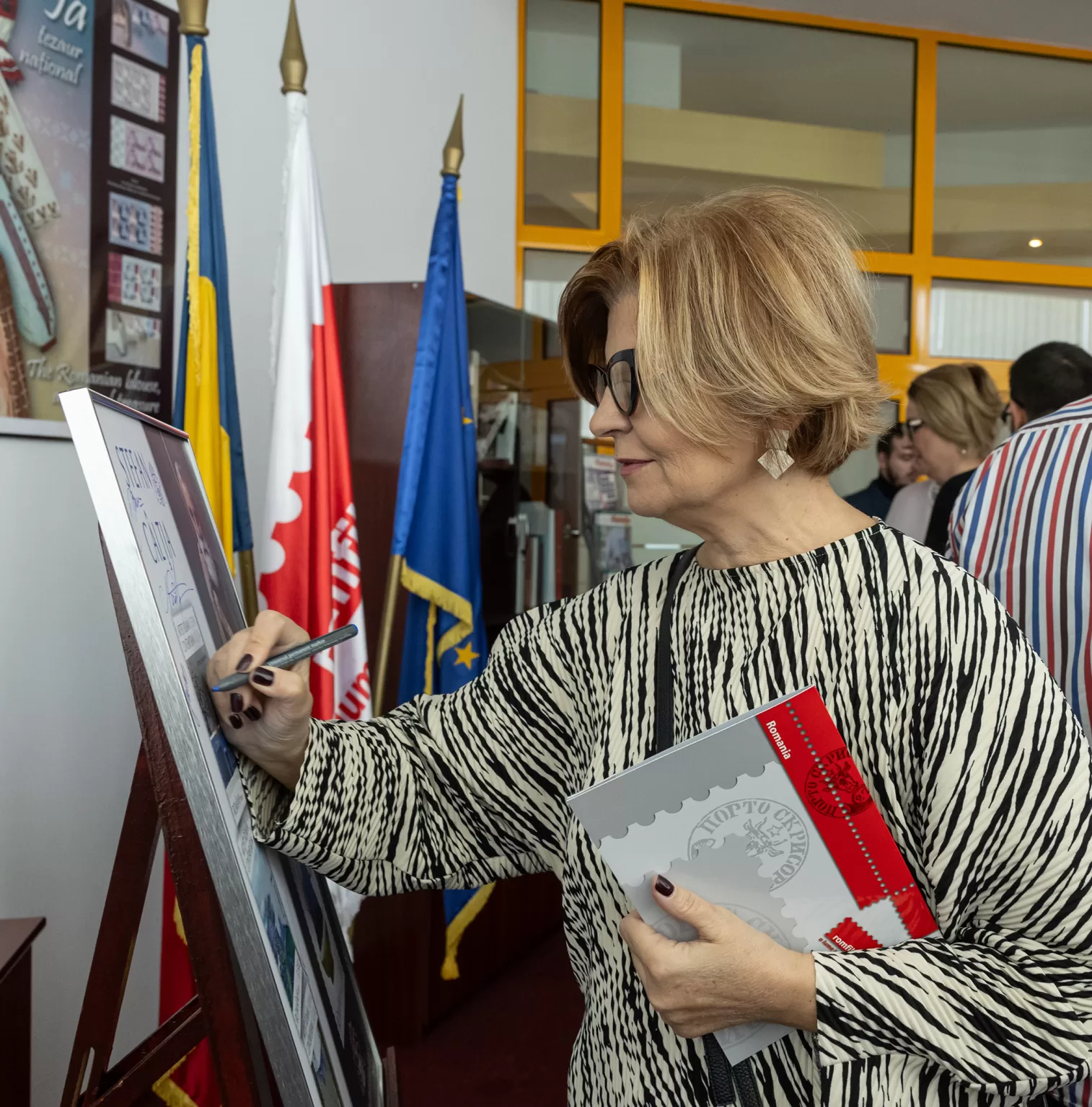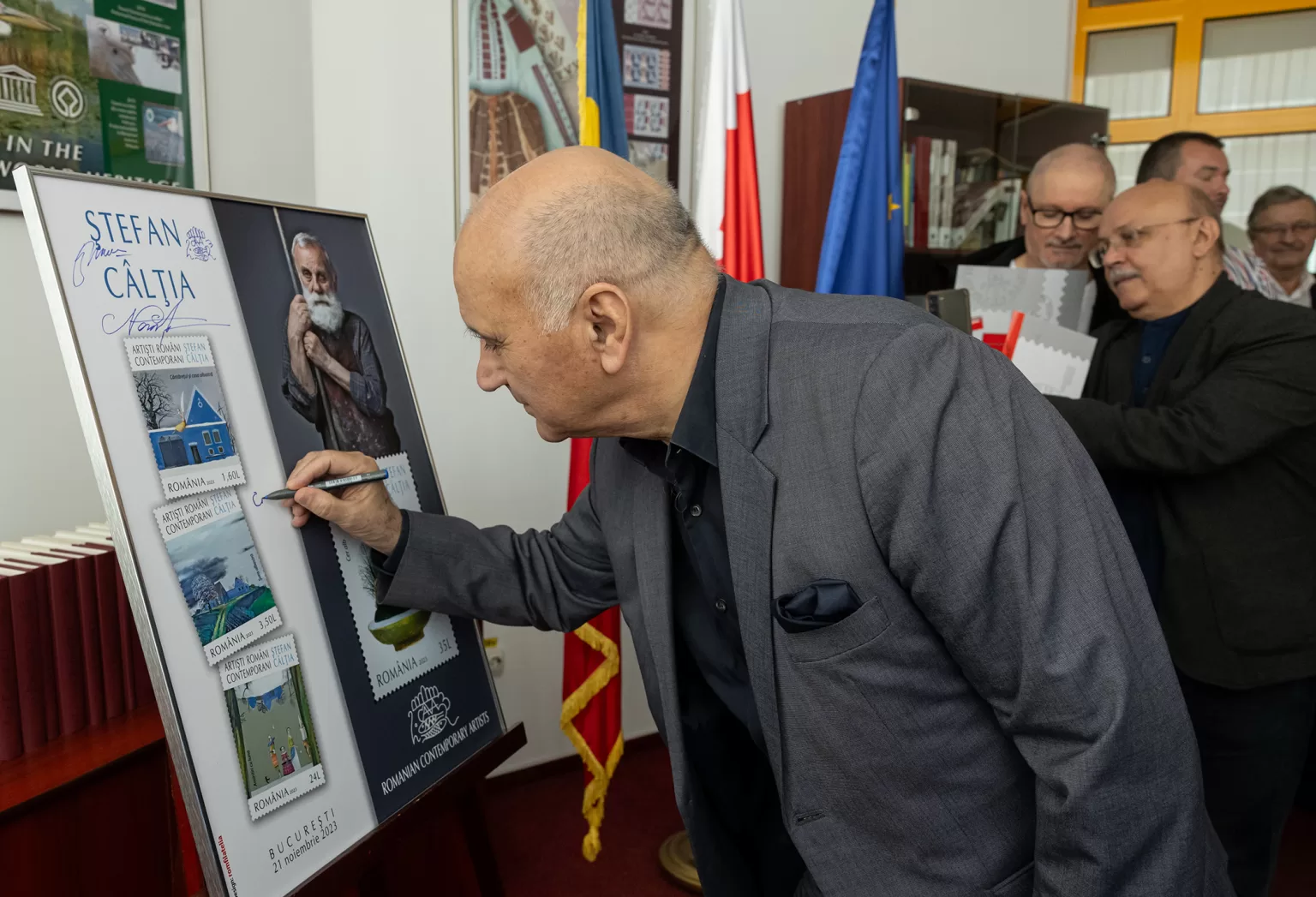 A urmat o sesiune de autografe, apoi panoul filatelic special a fost semnat de invitați, artistul intrând în patrimoniul filatelic. Apoi a semnat și în Cartea de onoare Romfilatelia, „Cu mlțumiri”, alături de un desen artistic, rămând o amintire dragă și un arc peste timp, pentru generațiile următoare.