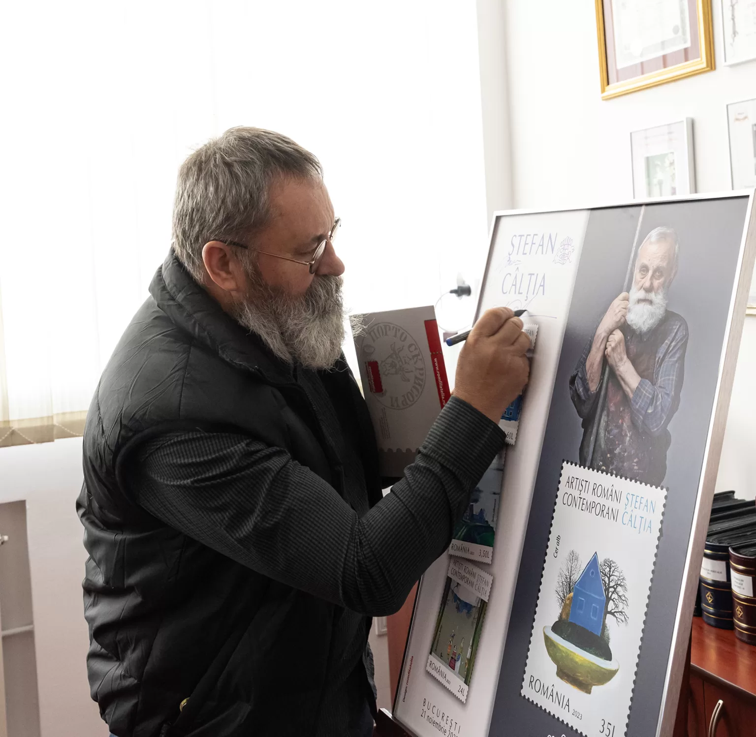 Romfilatelia a primit vizita Maestrului Ștefan Câlția, prilej cu care a fost prezentată emisiunea de mărci poștale Artiști români contemporani. Ștefan Câlția, dedicată artei sale, aducând în atenția colecționarilor și iubitorilor de frumos, unul dintre cei mai importanți creatori de artă ai momentului.