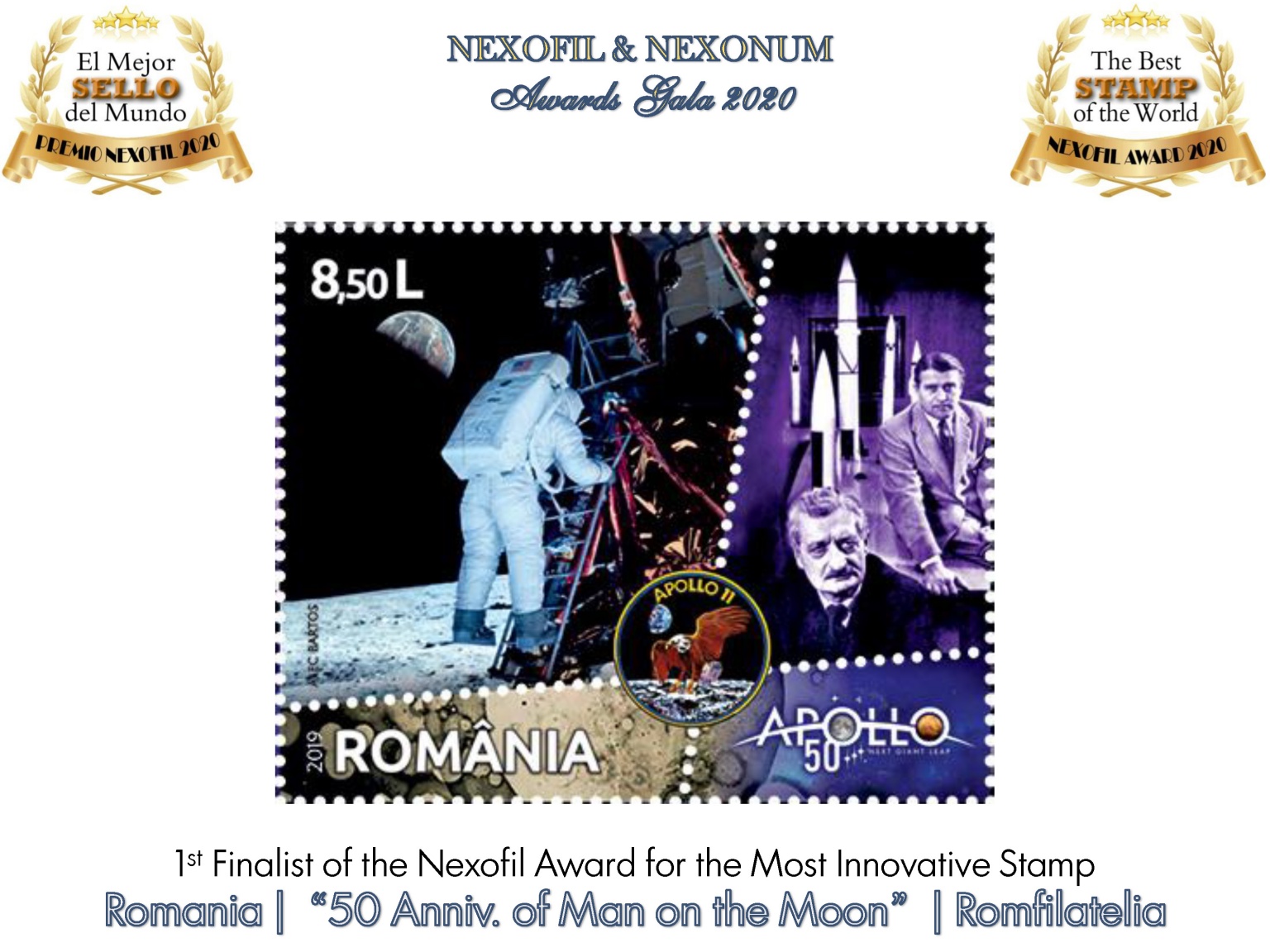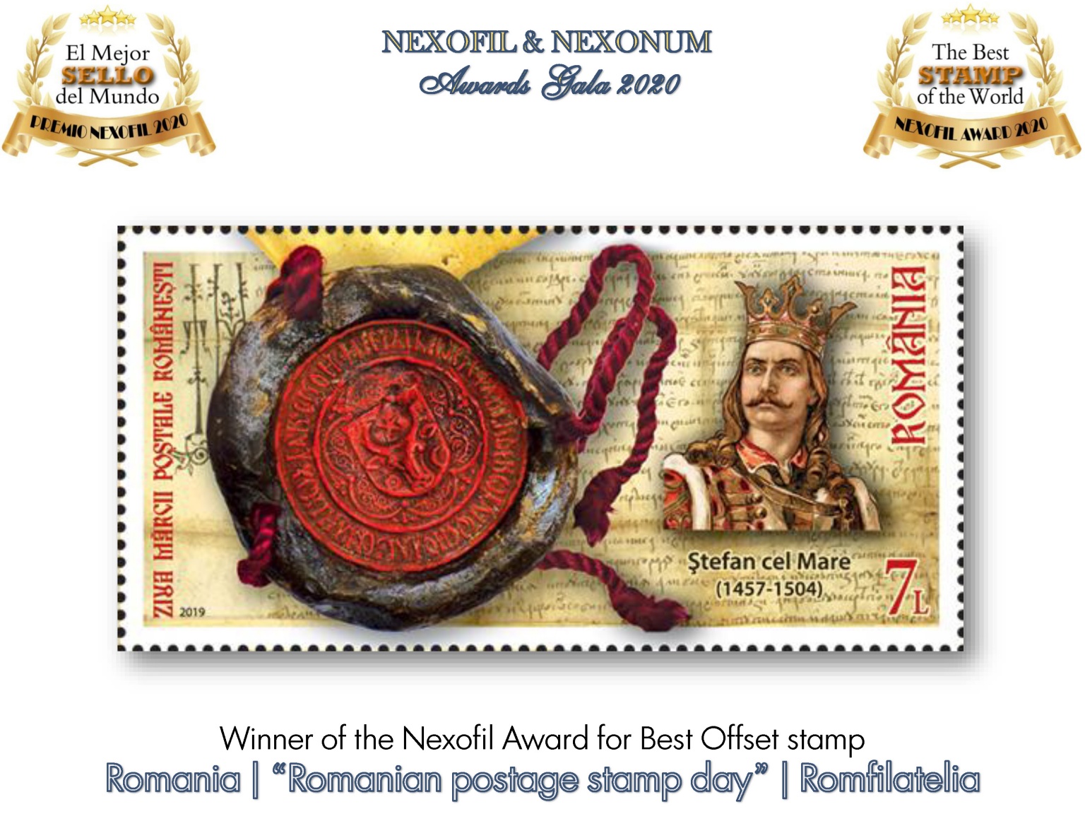 Pentru al 17-lea an consecutiv, revista spaniolă EL ECO Filatélico y Numismático și Grupul NEXO au organizat acordarea Premiilor Nexofil & Nexonum, care recunosc cele mai bune timbre și monede din lume emise în anul 2019 și pentru care s-au înscris 100 de instituții de profil din întreaga lume. Aceste premii, care au devenit repere pentru filatelia spaniolă, sunt acordate de un juriu internațional alcătuit din aproximativ de 50 de Președinți ai Federațiilor Naționale și Academice din Europa și America.