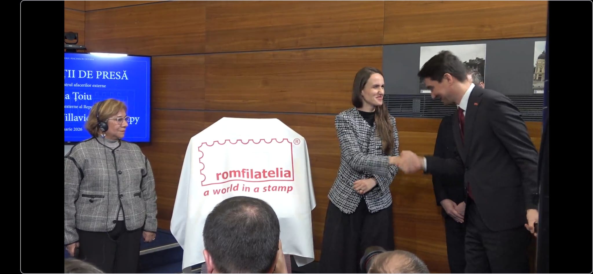 Momentul a fost marcat prin semnarea panoului filatelic dedicat, de către cele două doamne ministru și Valentin Ștefan , Director General al Poștei Române: „Filatelia este o punte care vorbește despre respect, istorie și prietenie între popoare.”.