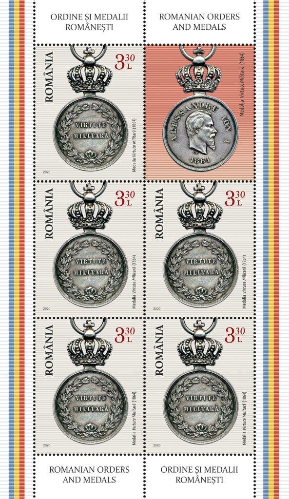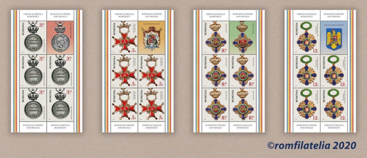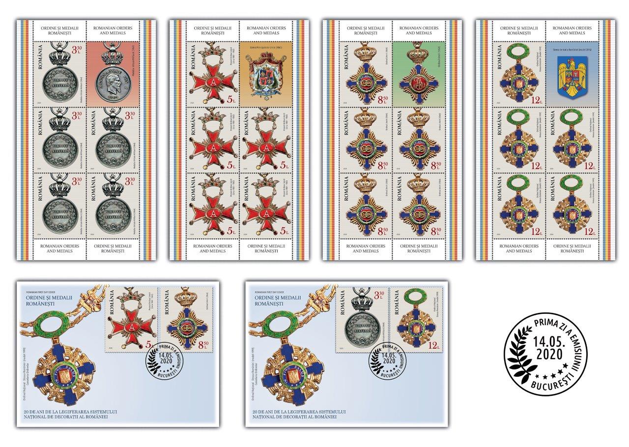 Continuând seria tematicilor dedicate Ordinelor și Medalisticii, Romfilatelia introduce în circulație joi, 14 mai 2020, emisiunea de mărci poștale intitulată Ordine și Medalii Românești.
