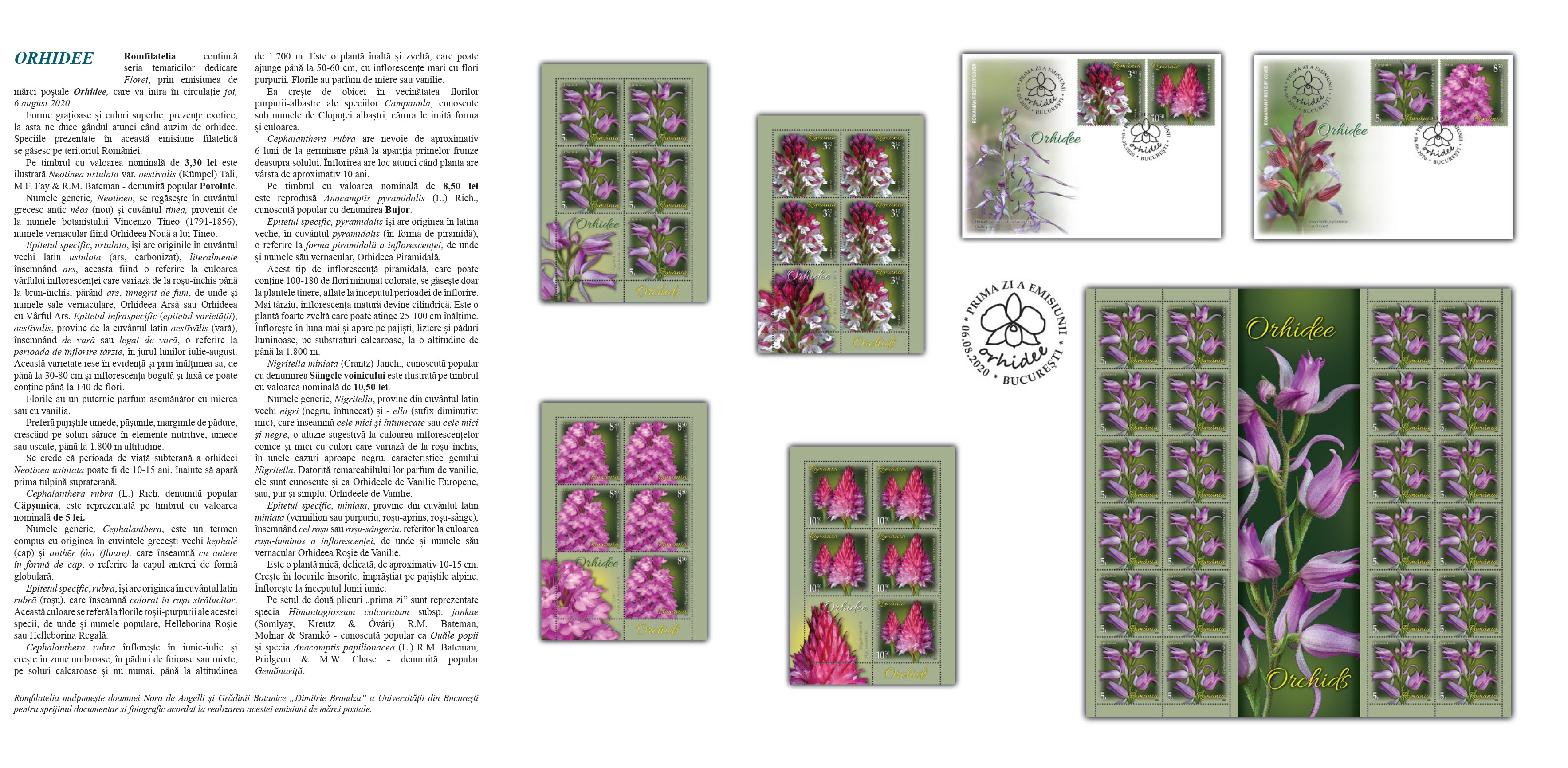 Romfilatelia mulțumește doamnei Nora de Angelli și Grădinii Botanice „Dimitrie Brandza” a Universității din București pentru sprijinul documentar și fotografic acordat la realizarea acestei emisiuni de mărci poștale.