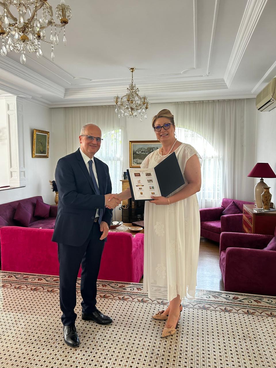 Rabat, 27 iunie 2024Romfilatelia, la invitația doamnei Maria Ciobanu, ambasadorul României în Maroc, alături de conducerea Poștei Maroc, a prezentat emisiunea comună de mărci poștale cu tema „Artă populară”.