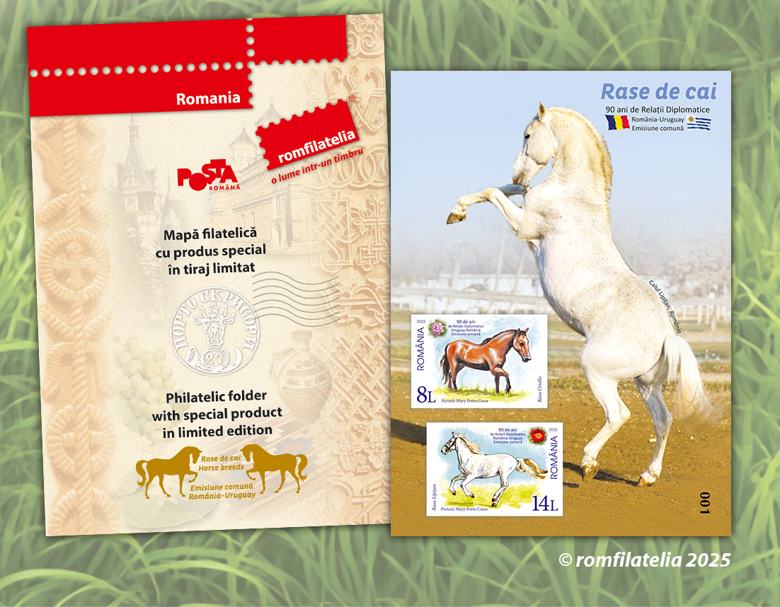 Mapa filatelică este realizată în tiraj limitat de 447 exemplare și este echipată cu blocul special de 2 timbre nedantelate cu perfor decorativ și colița nedantelată a emisiunii. Cele două piese filatelice au aplicat cu folio aur cifra 150 și sunt numerotate de la 001 la 447.