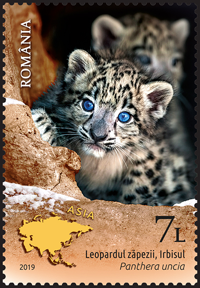 Pe al treilea timbru cu valoarea 7 Lei este ilustrat Leopardul zăpeziii sau Irbisul (Panthera uncia). Numit şi «fantoma munţilor», leopardul zăpezilor este un animal solitar, din familia felinelor, care trăiește în Munții Asiei Centrale, fiind o specie pe cale de dispariţie. Trăiește numai deasupra limitei pădurilor din Asia, vara retrăgându-se la altitudini de 3.600-4.000 m, iar iarna coborând până la 1.800 m.