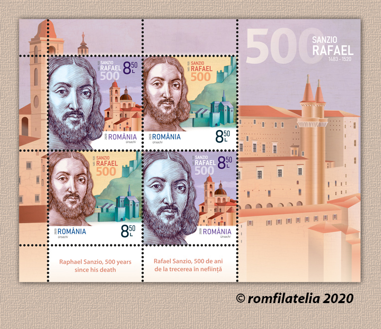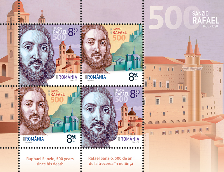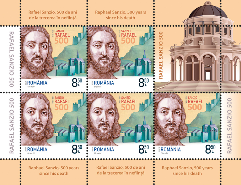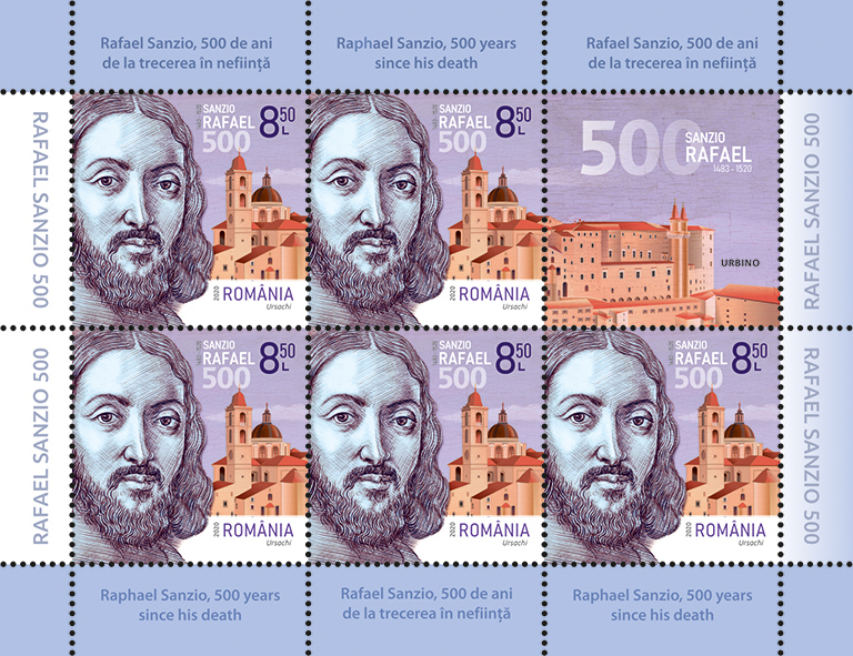 Romfilatelia propune colecționarilor o nouă tematică dedicată evenimentelor culturale, prin emisiunea de mărci poștale Rafael Sanzio, 500 de ani de la trecerea în neființă, care va intra în circulație miercuri, 9 septembrie 2020.