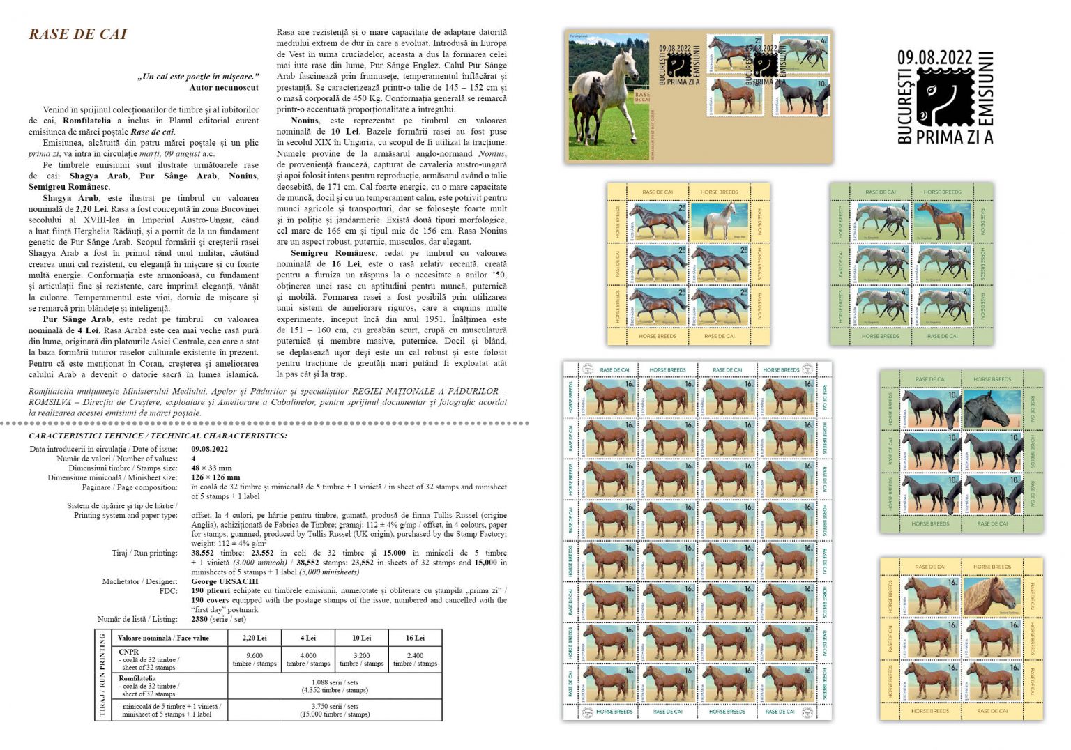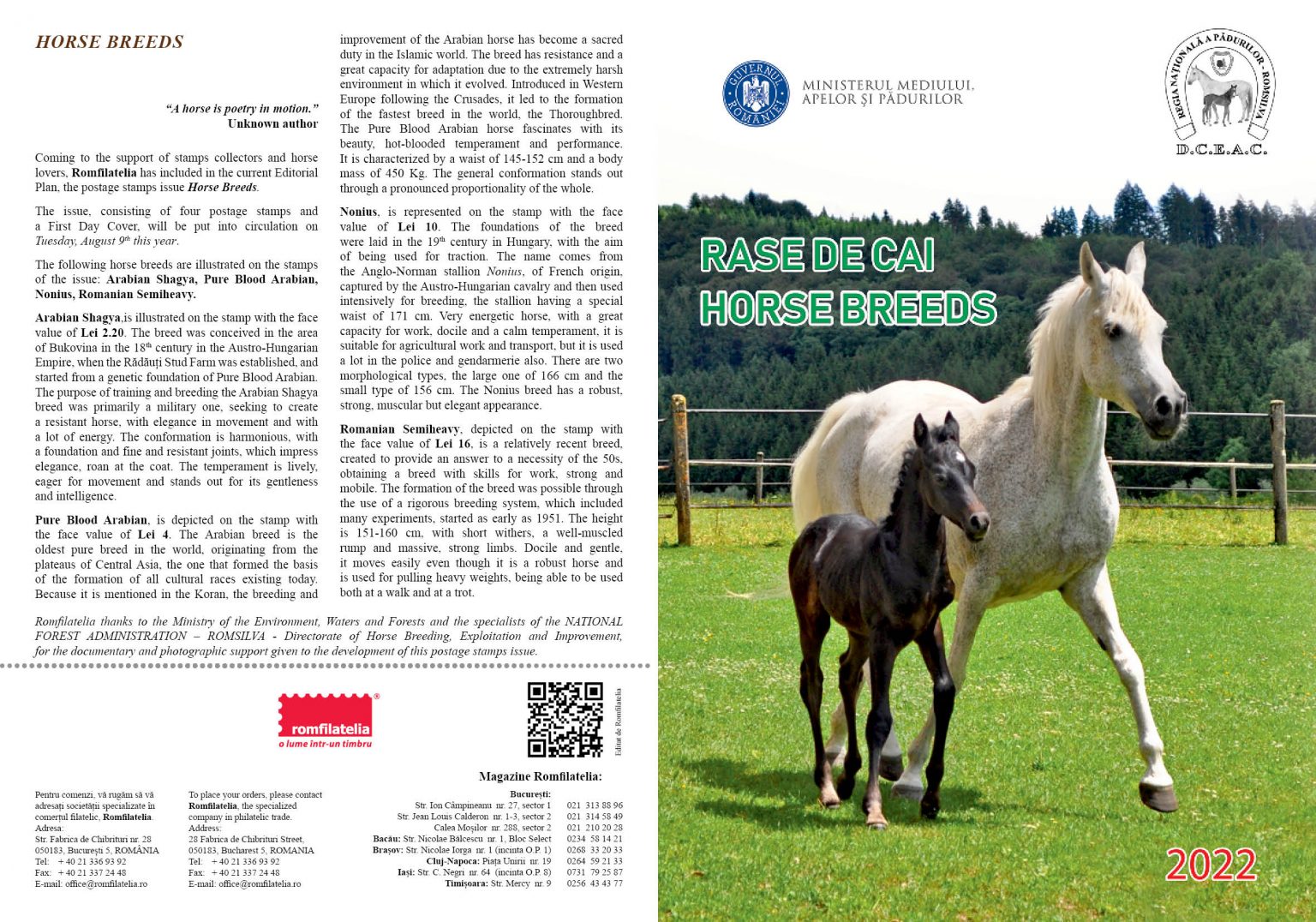 Venind în sprijinul colecţionarilor de timbre şi al iubitorilor de cai, Romfilatelia a inclus în Planul editorial curent, emisiunea de mărci poștale Rase de cai.