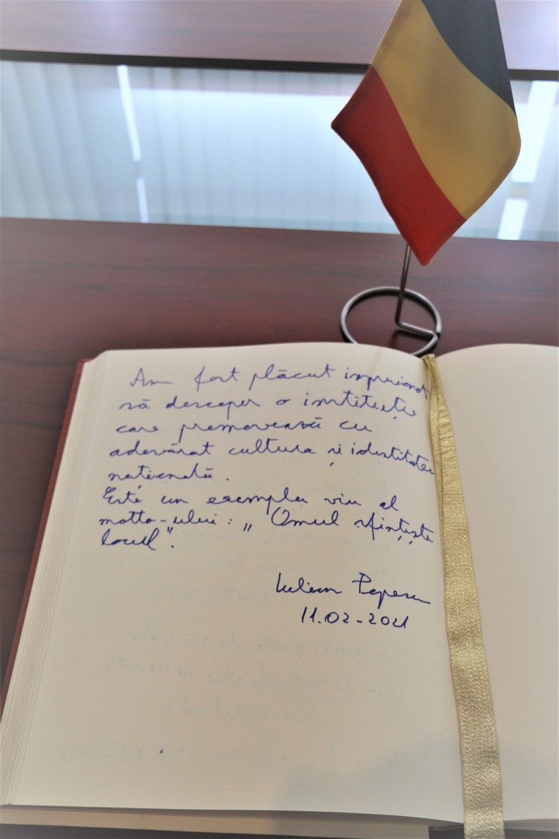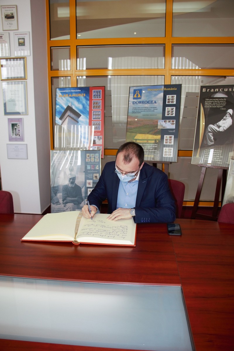 În încheierea vizitei, domnul Popescu a avut amabilitatea de a lăsa echipei Romfilatelia un mesaj în Cartea de Onoare: „Am fost plăcut impresionat să descopăr o instituție care promovează cu adevărat cultura și identitatea națională. Este un exemplu viu al motto-ului : „Omul sfințește locul”.
