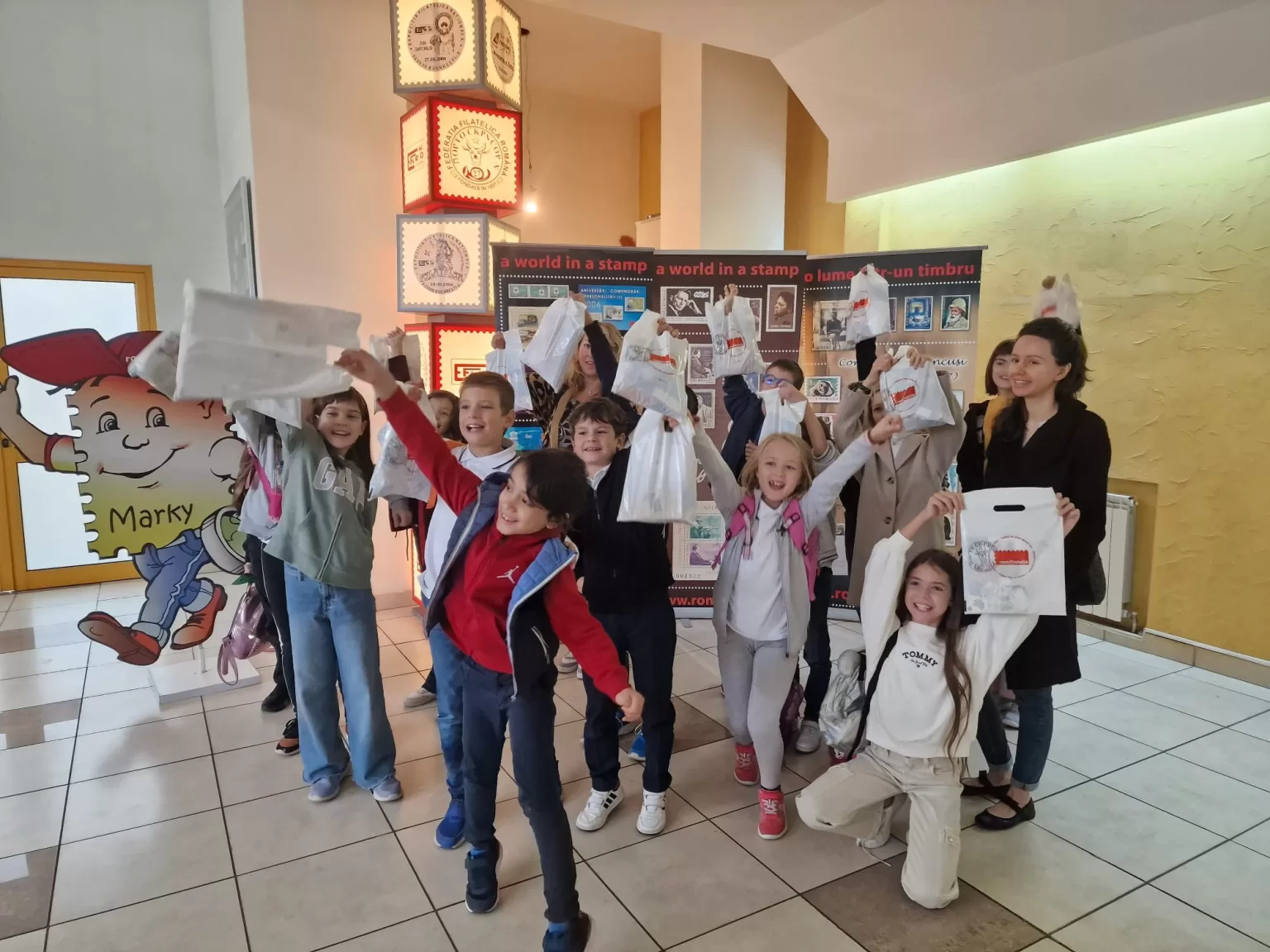 Timbrele spun întotdeauna o poveste.💌 Un #timbru te poartă în cele mai frumoase călătorii, în care nu ai nevoie de viză și pașaport.😉 De ce? Pentru că reprezintă un întreg univers de cultură și valori.😇 Prietenii noștri de la Liceul Teoretic Național, alături de mascota #Marky, s-au întâlnit cu echipa Romfilatelia, care le-a spus copiilor #povesteatimbrului sau despre cum trimit oamenii scrisori cu timbru. 📩📬Și când se bucură cei mici cel mai tare?🥰 Când primesc cadouri! 😃La finalul activității toți copiii au primit daruri filatelice și daruri dulci.