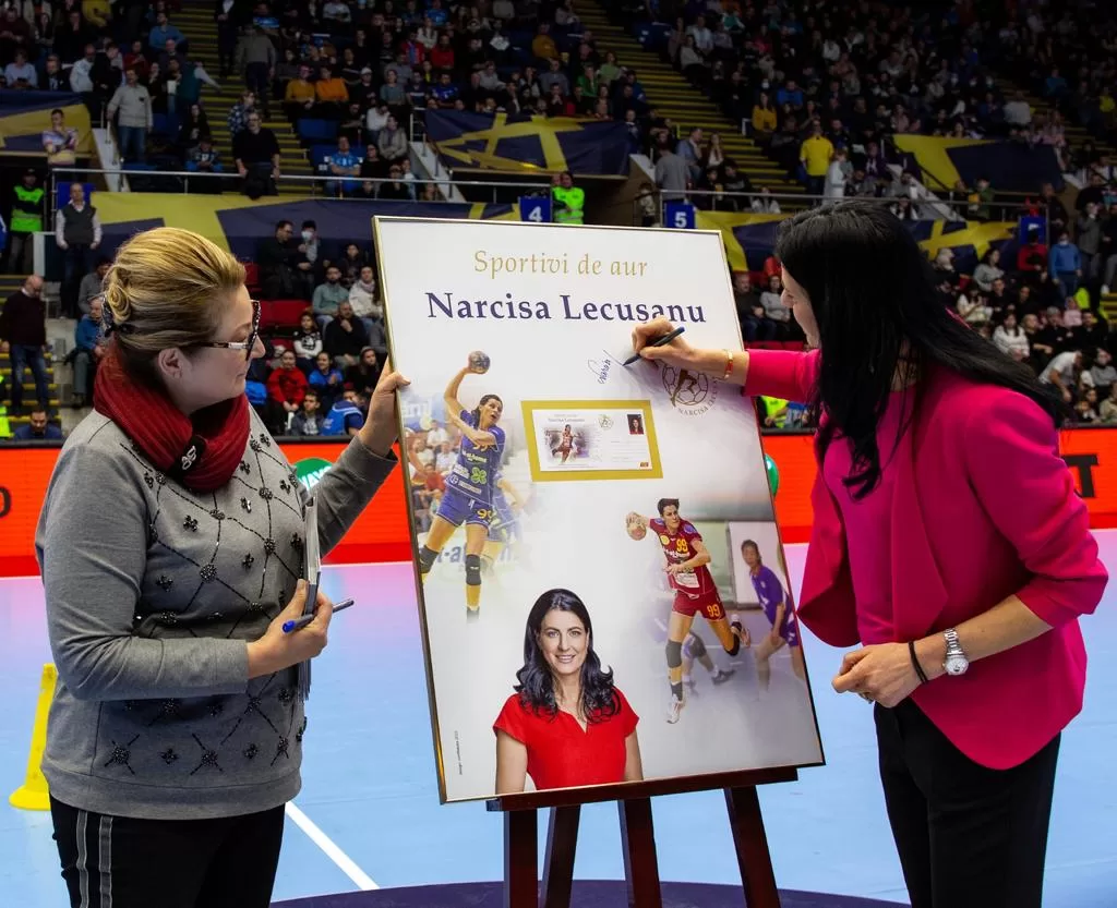 Cu ocazia meciului, Romfilatelia a avut plăcerea și onoarea să prezinte publicului și prietenilor handbalului românesc, produsul filatelic special dedicat marii sportive Narcisa Lecușanu.